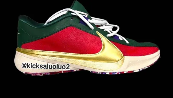 La saison a été bien remplie du côté de Nike pour Giannis Antetokounmpo avec la Zoom Freak 4 et la Giannis Immortality 2. Alors que l’exercice en cours est encore loin d’être terminé, la marque à la virgule planche déjà sur la suite avec la Zoom Freak 5 dont le premier cliché a fuité sur le compte Instagram @Kicksdong, toujours bien renseigné.