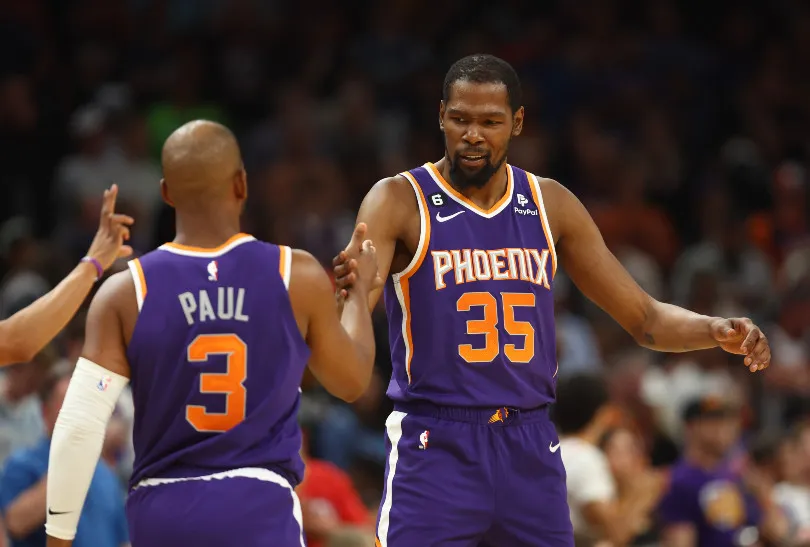 En difficulté depuis le début du match avec un 0/6 au tir, Kevin Durant marque son premier point à domicile sous le maillot des Suns au milieu du second quart-temps, sur un lancer franc. Dans la foulée, il enchaine en marquant son premier panier sur un sublime fadeaway sur la tête de Jaden McDaniels. À moins de 5 minutes de la pause, les deux équipes n’arrivent pas à se départager (38-38). Auteur de 20 points, Karl-Anthony Towns permet aux Wolves de rentrer aux vestiaires avec 3 points d’avance (51-48).
