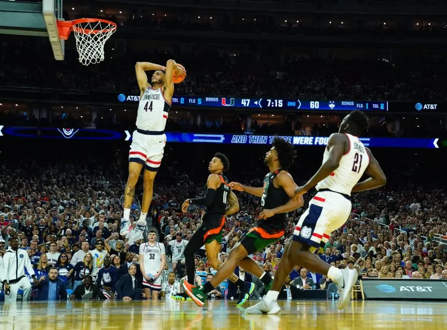Sous les yeux d’anciennes gloires du programme tels que Kemba Walker, Rip Hamilton ou encore Ben Gordon, présents à Houston pour l’occasion, les hommes de Dan Hurley ont ainsi réussi là où Drake, Indiana, Houston et Texas avaient échoué aux quatre tours précédents : ralentir l’attaque de Miami, limitée à 32% aux tirs…