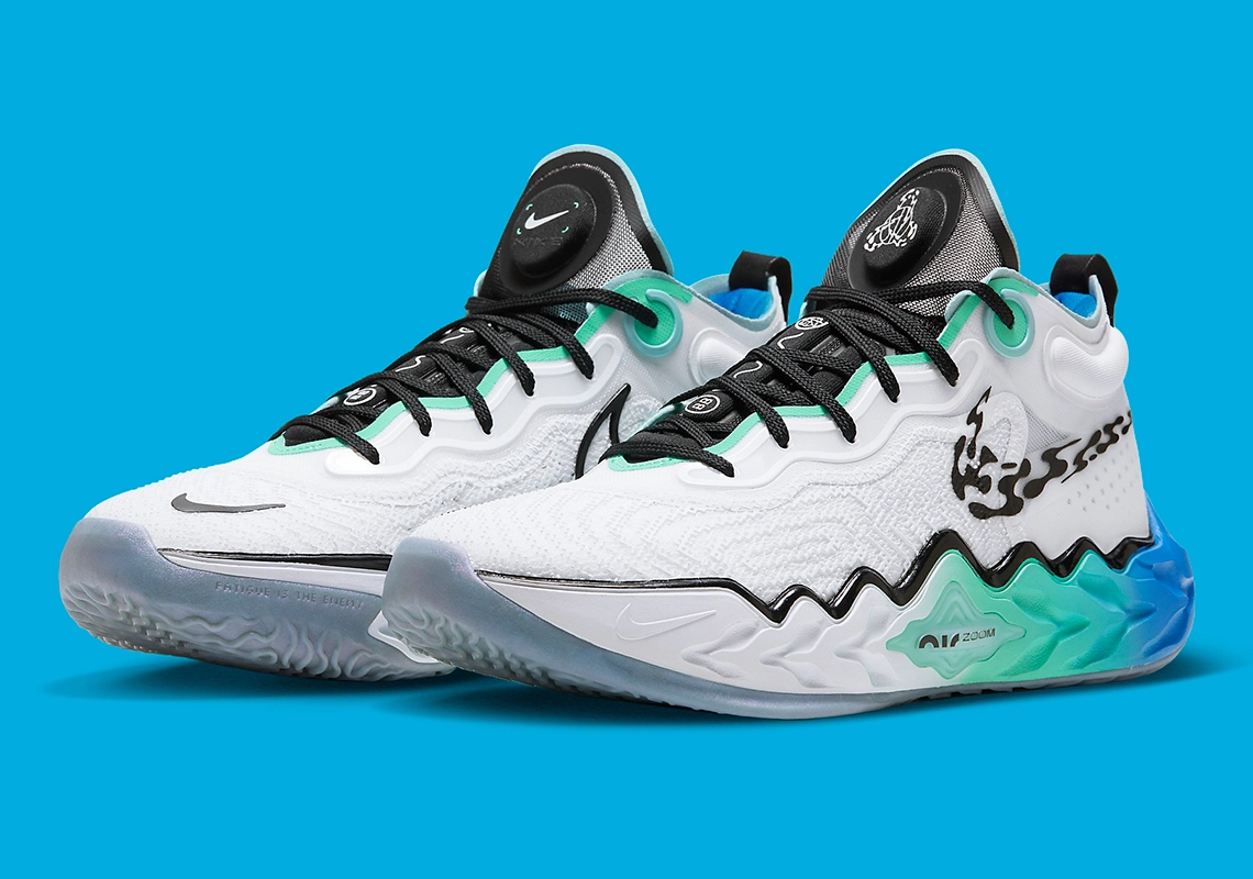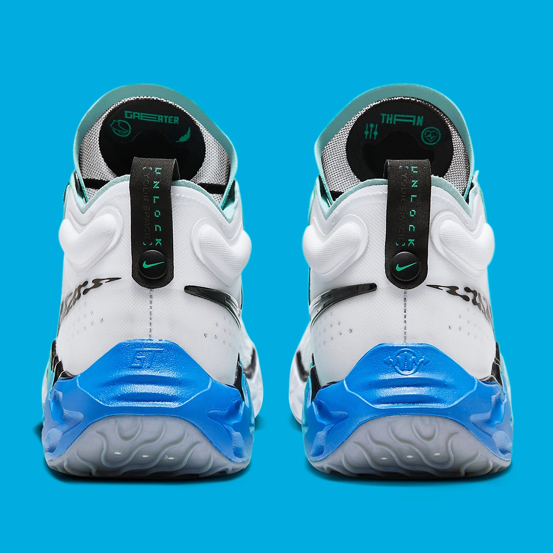 En attendant donc une Nike Zoom GT Run 2, voici le retour de la première version dans le thème « Unlock Your Space », avec une tige principalement blanche complétée par des finitions noires. Des touches allant du vert au bleu en passant par le turquoise enjolivent l’ensemble, au niveau de la semelle intermédiaire notamment, en mousse Nike React.
