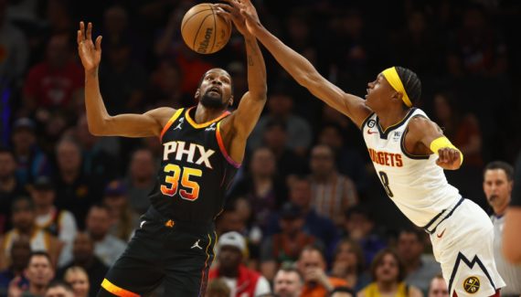 « Liés » par le Covid-19 donc, Kevin Durant et Peyton Watson s’affrontaient pour la deuxième fois en une semaine et, à chaque fois, l’aîné a donné une leçon au rookie, impuissant —comme quasiment n’importe quel défenseur— devant la maîtrise offensive de « KD » (30 points puis 29 points). Même si l’arrière de 20 ans a, malgré son manque d’expérience, proposé quelques belles choses face à son mentor en défense, mais aussi en attaque.