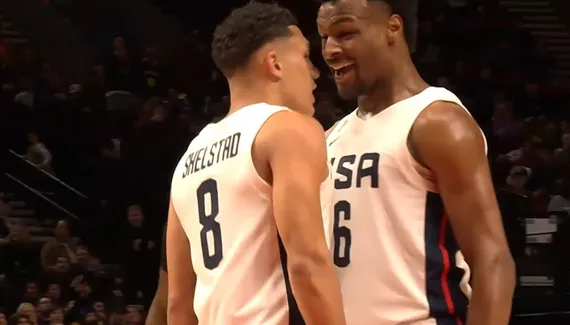 Sous les yeux de ses parents et de sa soeur, mais aussi de Chris Bosh, Steve Kerr et Draymond Green, Bronny James avait gardé le meilleur pour la fin dans ce Nike Hoop Summit 2023. Auteur de deux air-ball en première mi-temps en sortie de banc, le fils de LeBron James inscrit 7 de ses 11 points dans le dernier quart-temps, et on retiendra ce 3-points puis ce contre pour repousser les efforts de la Team World. Mais aussi ce gros rebond à cinq secondes de la fin et les lancers-francs de la victoire dans les dernières secondes.