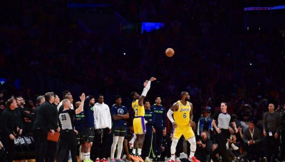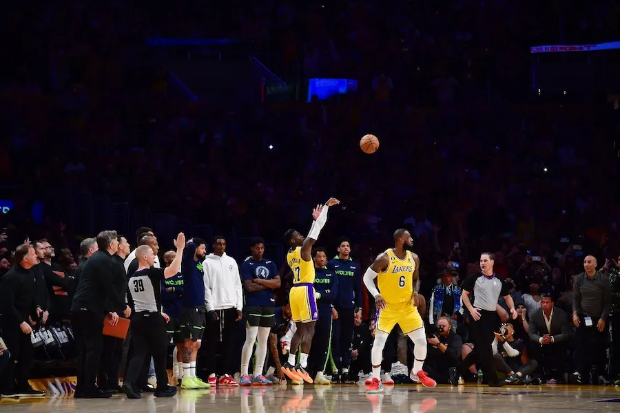 À ce moment-là, les deux hommes pensaient avoir offert la victoire à Los Angeles. Avec une poignée de secondes à jouer et un score à égalité avec les Wolves (95-95), le « King » venait de fixer toute la défense adverse avec sa pénétration ligne de fond, pour offrir sur un plateau un tir primé à son meneur. Ce dernier, seul au monde, n’a eu plus « qu’à » envoyer pour sanctionner.