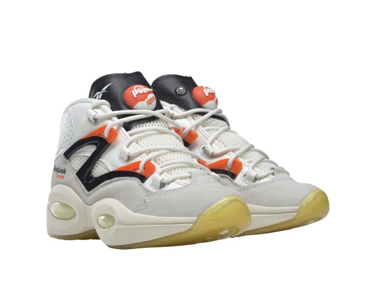 Après un premier essai en 2014, Reebok s’est remis à l’hybride pour concevoir une nouvelle version de la « Pump Question ». Pour faire simple, la semelle est inspirée de la « Question » et la tige de la « Pump ».