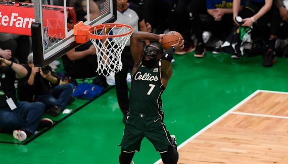 Après son malheureux incident domestique qui lui a coûté cinq points de suture en fin de semaine dernière, Jaylen Brown est dans une situation délicate pour attaquer les playoffs puisqu’il doit jouer avec un strap sur les doigts endommagés de sa main droite. Pas de quoi l’empêcher de jouer ce Game 1 et Jaylen Brown s’est montré à la hauteur de l’événement en inscrivant 29 points à 12/23 au tir pour aller avec 12 rebonds.