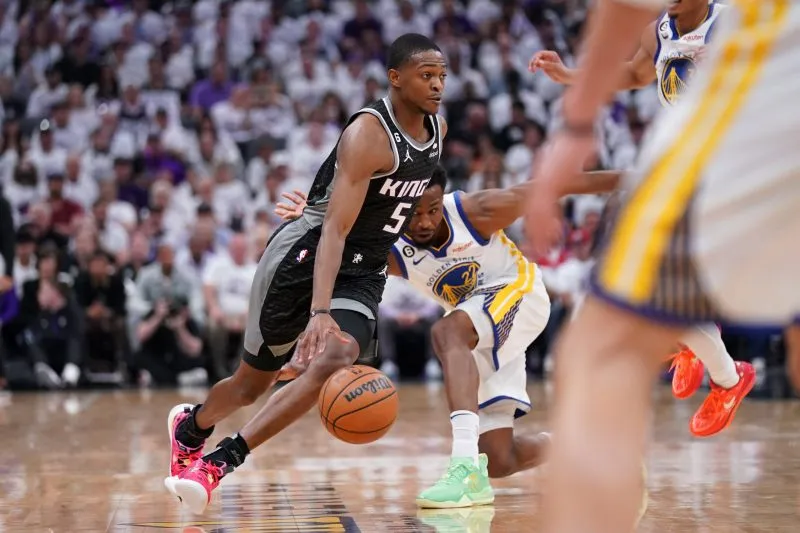 ⛔ Kevin Huerter et Keegan Murray. Si Domantas Sabonis a vécu un calvaire face à Draymond Green et Kevon Looney (5/17 au shoot), sa présence au rebond (16, dont 5 offensifs) a été primordiale pour permettre aux Kings de gagner cette bataille. Ainsi, on est contraint de s'attarder sur la prestation ratée de la paire Huerter/Murray, qui a illustré à elle seule les difficultés au shoot des Kings : 8 points en cumulé, à 0/8 à 3-points (et malgré plusieurs belles positions de tir). Heureusement que Malik Monk, Trey Lyles ou Davion Mitchell étaient là pour compenser la soirée sans de leurs deux coéquipiers.