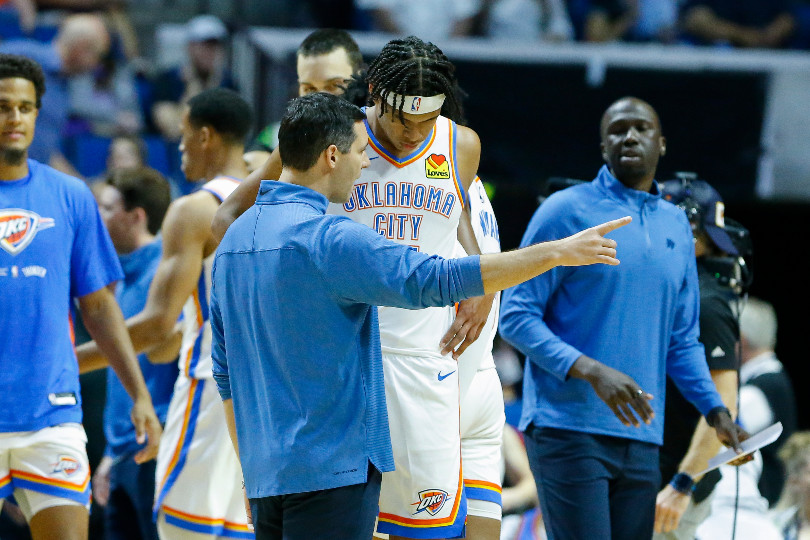 L’ailier a en revanche bénéficié de la présence de Luguentz Dort, francophone, et de son compatriote Olivier Sarr, pour faciliter son intégration. Il a également profité de ses 9 matchs de G-League avec le Blue d’OKC pour garder le rythme (17.2 points, 7.7 rebonds, 3.1 passes décisives en moyenne en 9 matchs).