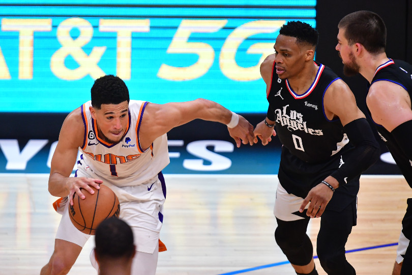 Ça n’empêche pas les Suns de prendre le meilleur départ grâce à de nombreux rebonds offensifs. Phoenix cherche à fixer la défense des Clippers pour trouver Deandre Ayton sous le cercle et pointe rapidement à +6 (16-9). Avec son énergie, Russell Westbrook relance toutefois son équipe, bien relayé par Terance Mann en sortie de banc.