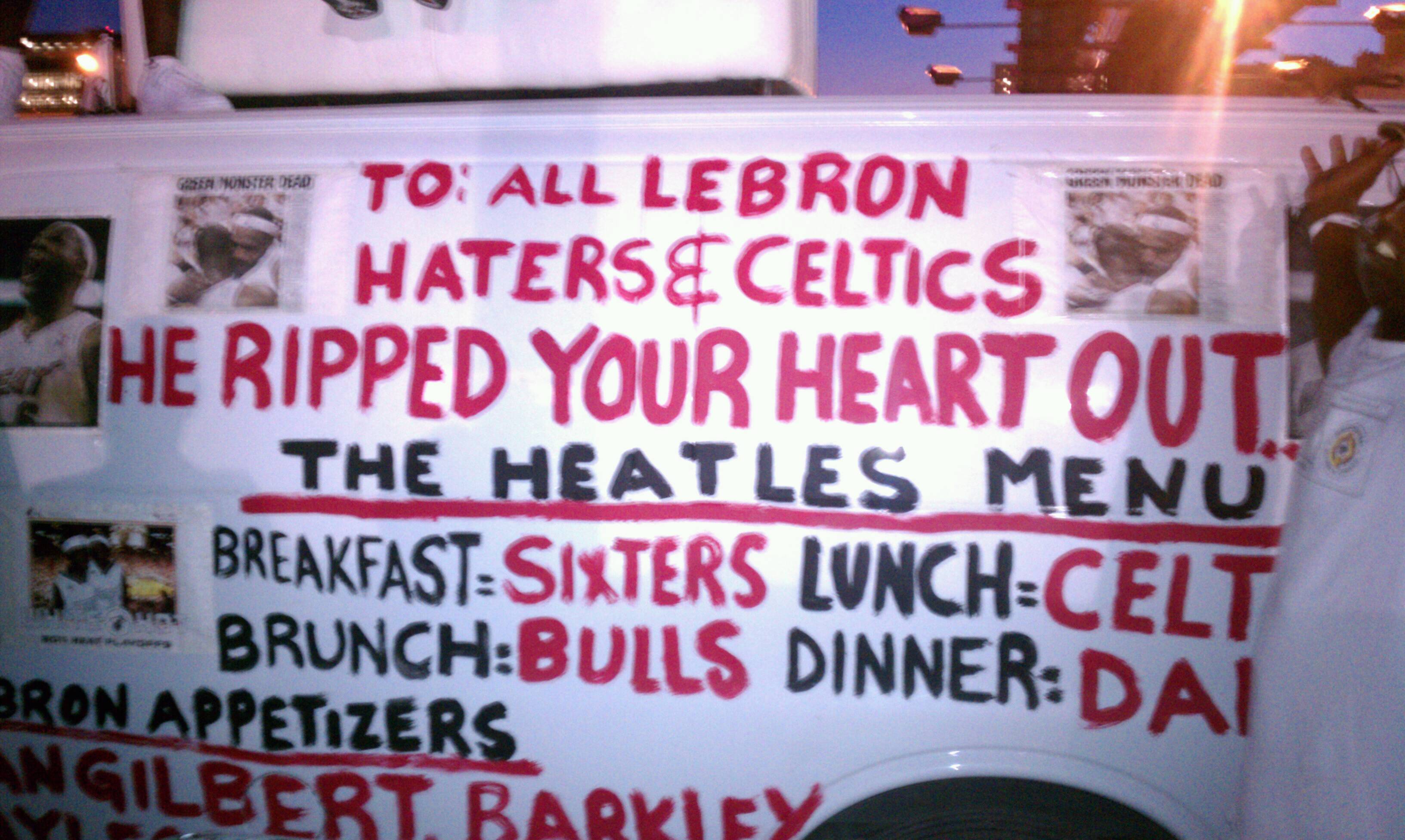 Voilà un fan du Heat qui n’a pas froid aux yeux. Alors que son équipe a atteint les Finales NBA, ce Floridien a transformé son véhicule pour illustrer le parcours de Miami en playoffs. C’est, en plus, une véritable ode à LeBron James.
