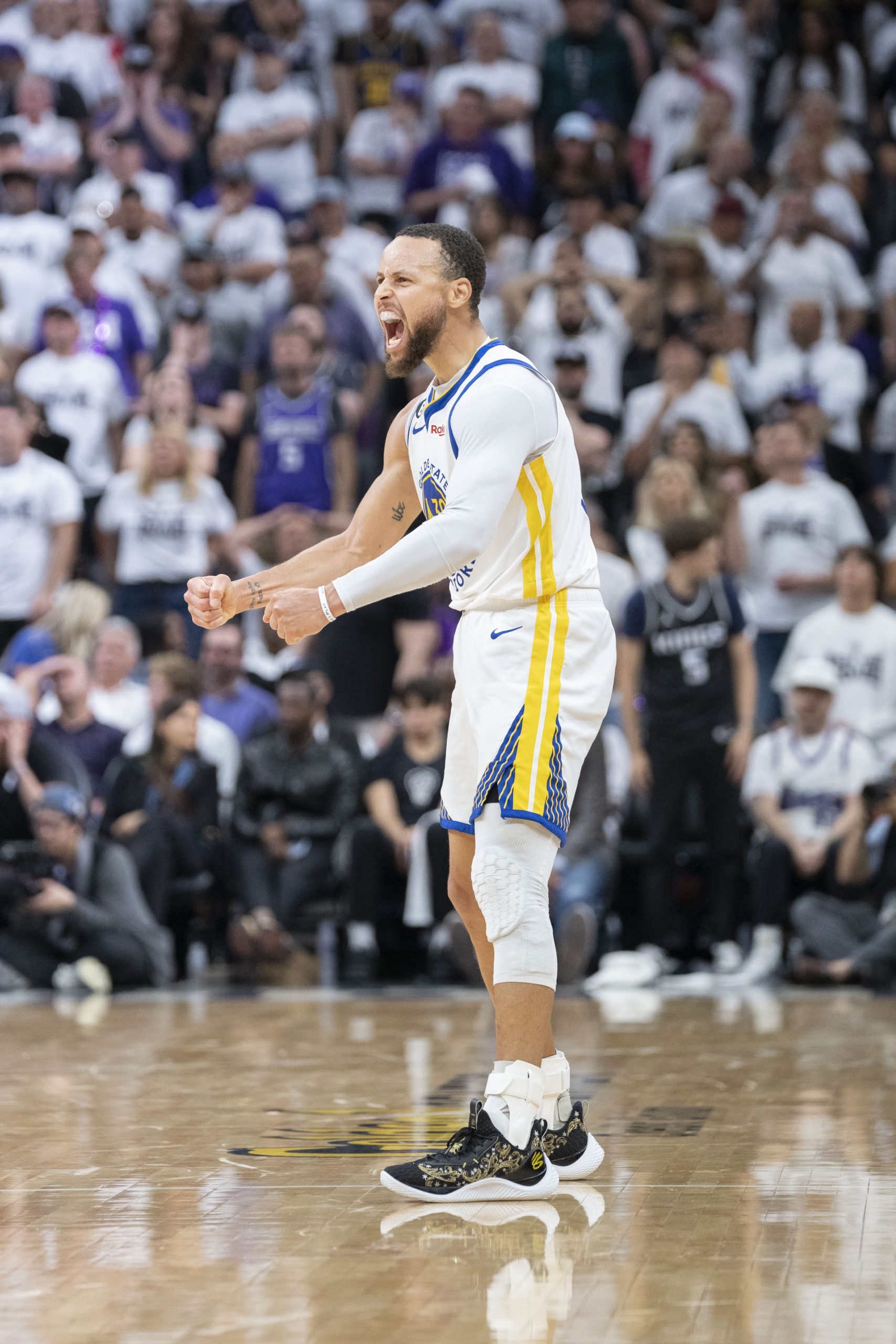 Under Armour s’est inspiré de son costume arboré ce soir-là pour imaginer une Curry 10 du même style, que le meneur des Warriors a porté dimanche lors du Game 7 remporté sur le parquet de Sacramento.