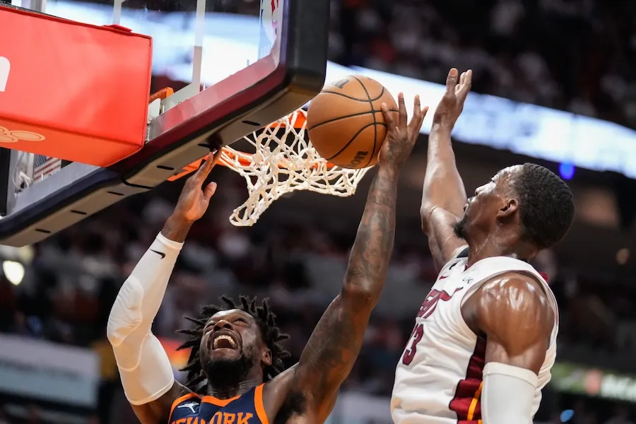 Un « fadeaway » impossible en fin de possession devant une grosse défense de Bam Adebayo, une faute offensive sur un écran mobile, une brique à 3-points… Voilà à quoi a ressemblé l'entame de rencontre de Julius Randle sur le parquet du Heat cette nuit.