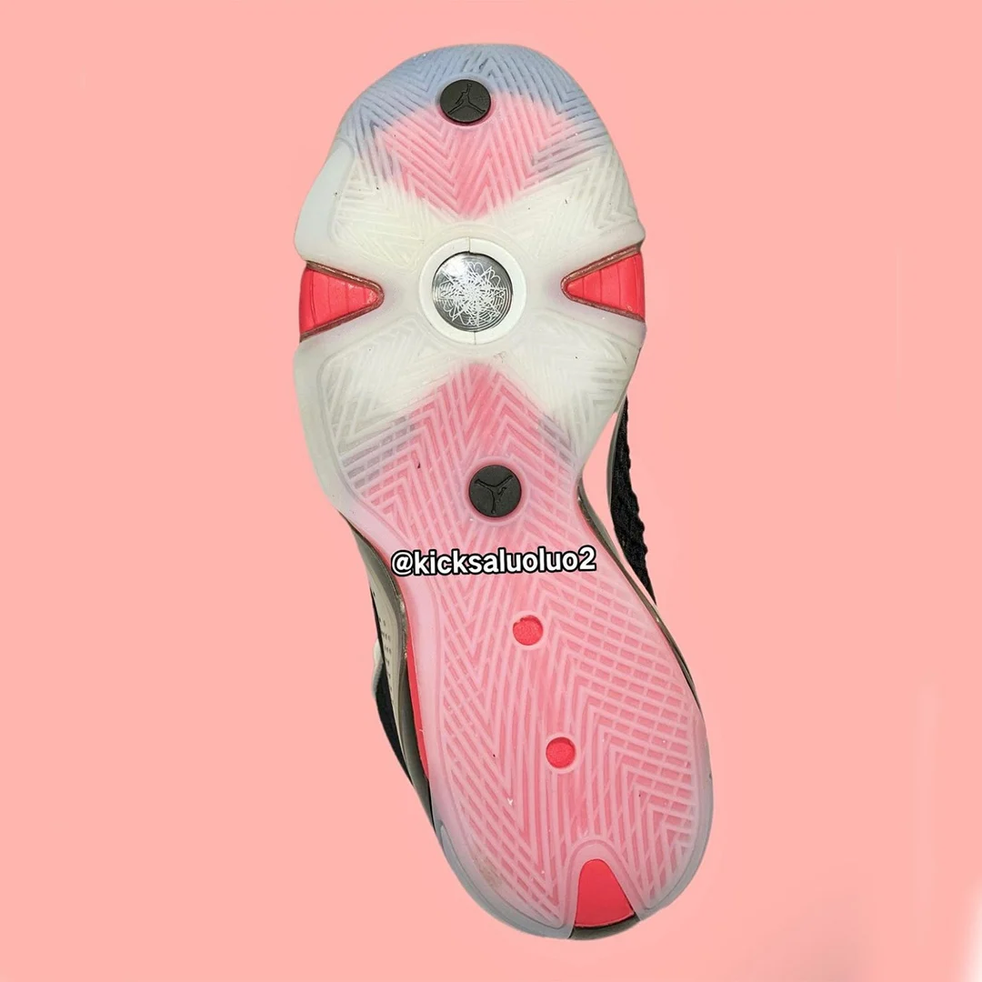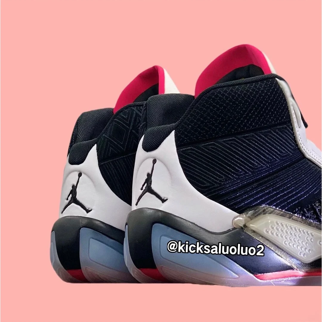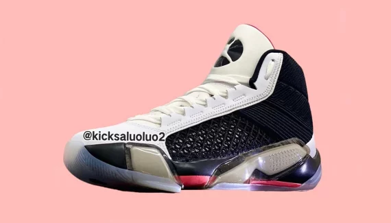 Comme de premiers clichés l’ont confirmé récemment, la Air Jordan 38 sera une mid-top dont la base de la tige en noir jouera sur l’aération, avec des compléments en blanc, visiblement en cuir, sur l’avant du pied et les accroches des lacets. On retrouve le même mariage de noir et blanc sur la languette sur laquelle ressort le logo « Jumpman ».