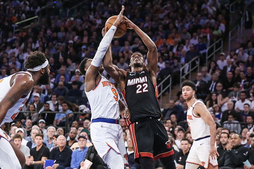 On n’est certes pas complètement de retour dans les années 90, avec les batailles de tranchées en règles que se livraient à l’époque les Knicks et le Heat. Mais, sous le regard d’anciennes gloires locales telles que John Starks et Latrell Sprewell, présentes au Garden, les Knicks ont tout donné pour rester en vie dans la série, à l’image de l’interception pleine de détermination de Quentin Grimes sur Jimmy Butler en dernier quart-temps, ou cette autre interception de Julius Randle dans les dernières secondes pour sceller la victoire de New York (112-103).