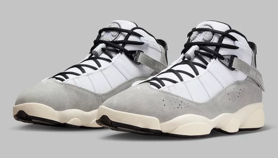 La collection de Jordan 6 Rings n’a cessé de se développer ces derniers mois, et la tendance devrait se poursuivre en 2023 alors que ce coloris « Cement Grey » vient d’être présenté. Cette version se démarque par la composition de la base de sa tige en daim gris pour compléter les parties en mesh blanc.