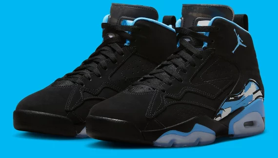 Comme son nom l’indique, c’est un modèle hybride inspiré des Air Jordan 6,7 et 8, portées par Michael Jordan lors de ses trois premiers titres de 1991 à 1993. On la retrouve ici avec une tige en nubuck noir assortie de finitions en bleu ciel « University Blue » sur le logo « Jumpman », le 23, le « Nike Air » sur le talon, et les finitions au niveau du col. Le bleu ciel et le blanc ressortent aussi sur la base arrière ainsi qu’au niveau de la semelle.