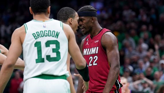 Le remplaçant venait ainsi d’inscrire un 3-points qui plaçait les Celtics à +9 (96-87) avec un peu plus de six minutes à jouer. Dans la foulée, Jimmy Butler lui a répondu avec le panier avec la faute et les deux hommes ont fini front contre front. Le problème, c’est que le leader du Heat a ensuite enchaîné les paniers, permettant à son équipe de passer un 18-4 qui a permis à Miami de sécuriser une deuxième victoire en deux matchs dans le Massachusetts…