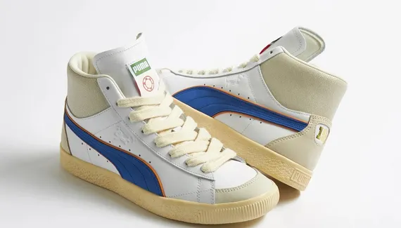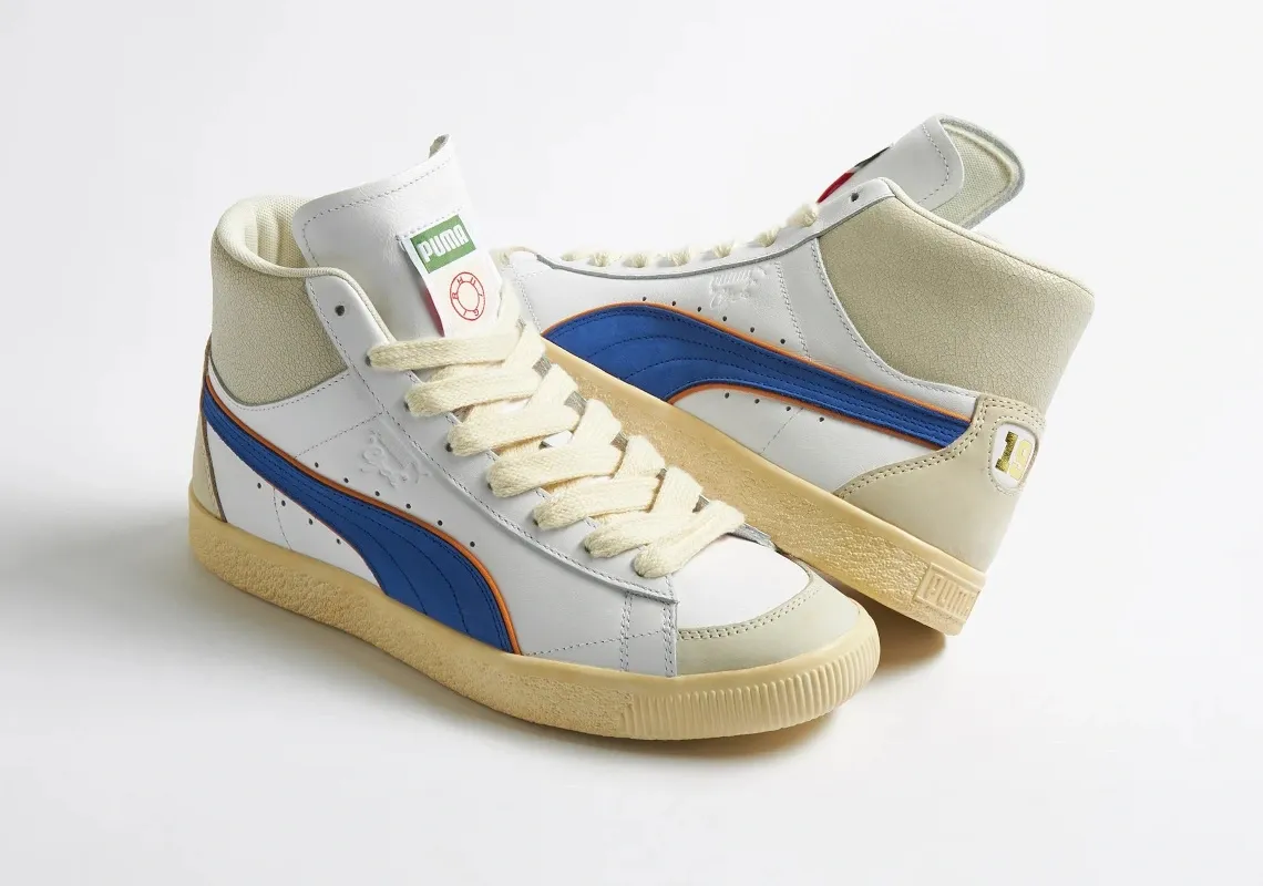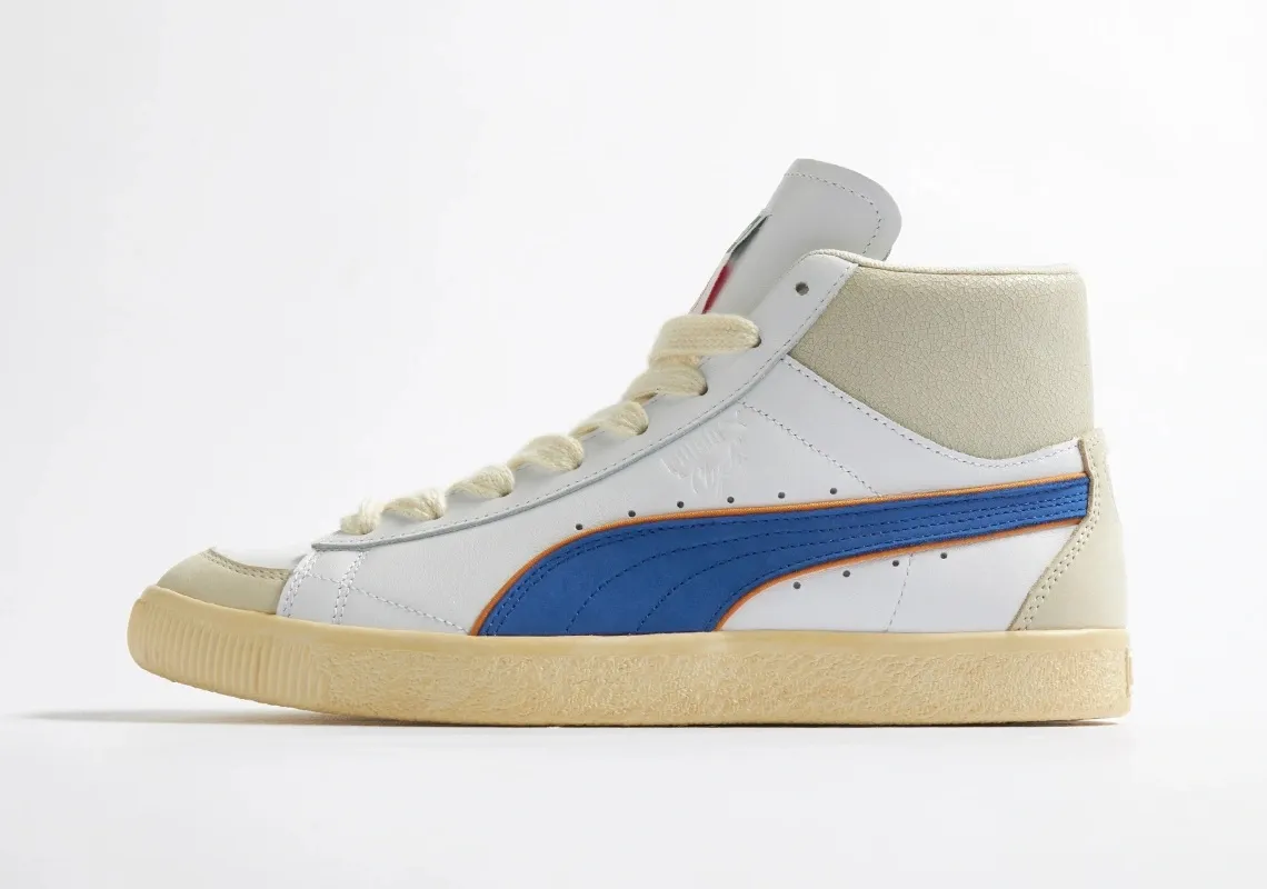Cette version comporte des bandes latérales en bleu et orange en référence aux couleurs des Knicks. L’autre point marquant, ce sont les détails authentiques en mode usé, comme la semelle pré-jaunie de la chaussure pour retranscrire ce qui fait l'essence même de cette nostalgie du basket « à l’ancienne ». À noter également la présence des logos Puma et de Rhuigi Villasenor sur la languette.