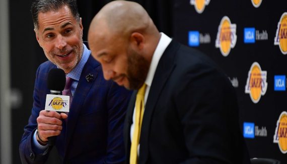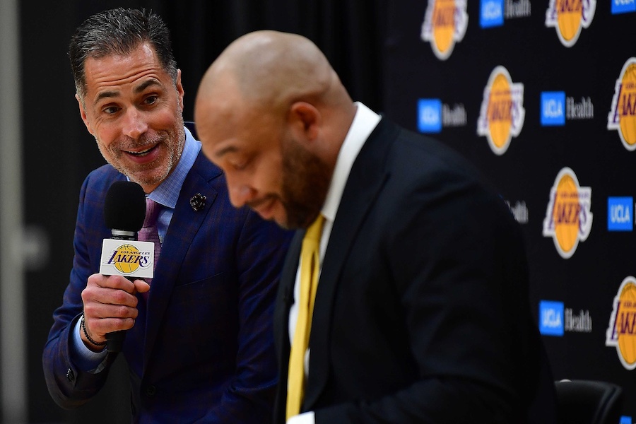 Cette petite scène, qui provoque le rire complice du dirigeant des Lakers, en dit beaucoup sur la relation entre les deux hommes, amenés à reconduire le navire Lakers l’an prochain.