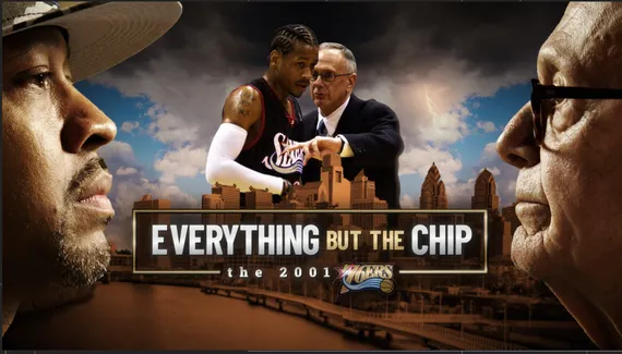 “Everything But the Chip : the 2001 76ers” reviendra donc sur la saison d'Allen Iverson, Larry Brown, Dikembe Mutombo et compagnie, terminée avec 56 victoires, la première place de la conférence Est, des trophées individuels en pagaille et une qualification en Finals face aux Lakers.