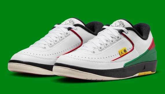 Pour fêter les vingt ans du Quai 54, Jordan Brand a présenté un Air Jordan 2 Low. Celle-ci est composée d’une tige en cuir blanc, assortie de bandes vertes et rouges au niveau du talon, avec un col noir. Le logo Jumpman et du Quai 54 apparaissent sur une languette présente sur l’empeigne, en noir sur fond jaune. La semelle est également en noir et jaune avec une partie en blanc.