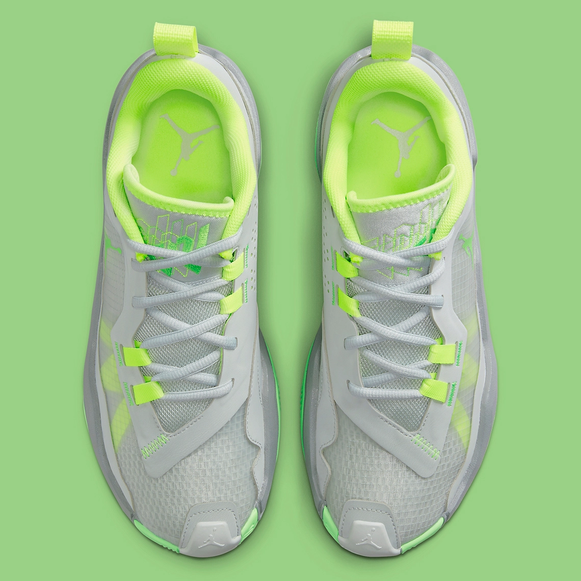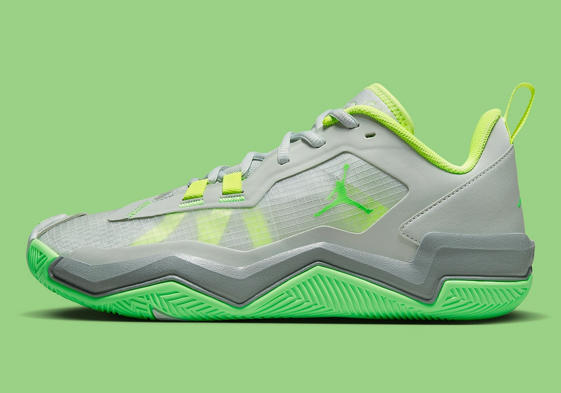 Déjà officiellement disponible en six coloris en France (au prix de 99,99 euros), la Jordan Westbrook One Take 4 va bénéficier d’une nouvelle série de coloris dont cette version en gris et vert.