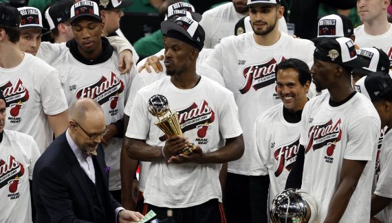 C’est un simple geste qui résume parfaitement le leadership de Jimmy Butler. Alors qu’il vient d’être élu MVP de la finale de conférence Est contre Boston, ce dernier se voit proposer le trophée de champion de la conférence Est des mains de Bam Adebayo. Avec son regard, il refuse, avant d’ajouter : “Je prendrai le prochain.” Sous entendu : le trophée Larry O’Brien de champion NBA…