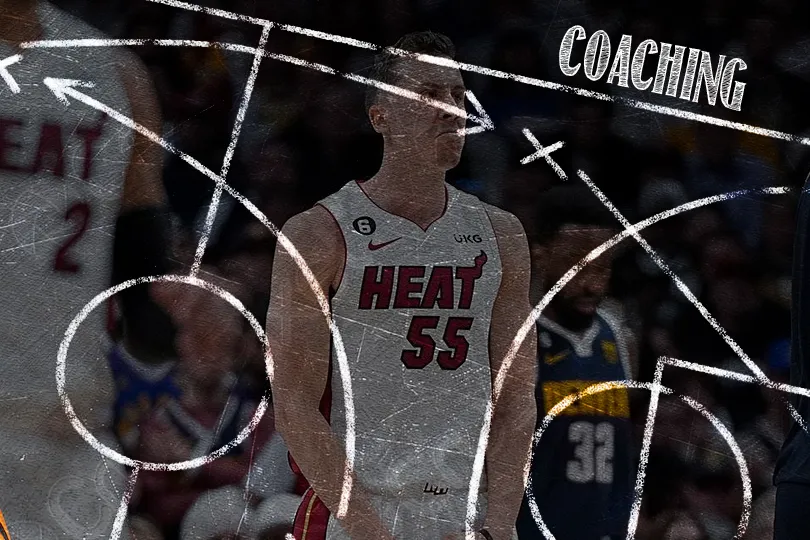 Mike Malone demande un temps-mort alors que son équipe vient de perdre 6 de ses 8 points d'avance. Nikola Jokic revient mais le Heat insiste sur Duncan Robinson. Un simple “curl” avec Bam Adebayo à la passe et Gabe Vincent qui pose l'écran sur Christian Braun engendre une erreur de communication entre le rookie et Bruce Brown.