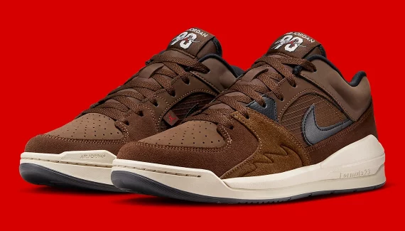 C’est cette fois un coloris « Baroque Brown » qui devrait prochainement compléter la collection, avec une tige marron entre nubuck, daim et ripstop, sur lequel le « Swoosh » ressort en noir. La semelle intermédiaire en blanc nacrée est dotée de la mousse Formula 23 reposant sur une semelle extérieure noire.
