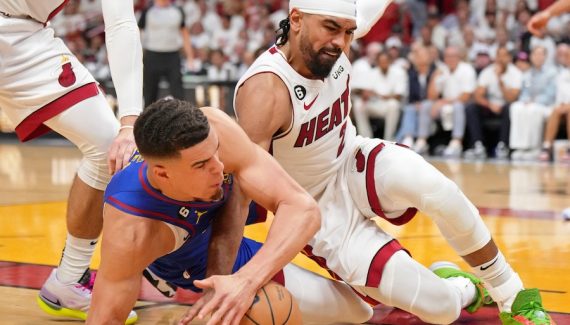 La séquence est éloquente et terrible pour le Heat. À cinq minutes de la fin du troisième quart-temps, du Game 3, Jamal Murray tente sa chance à 3-points face à Bam Adebayo en fin de possession. C’est raté mais Michael Porter Jr, non bloqué par Max Strus, surgit pour capter le rebond offensif à une main, près du cercle.