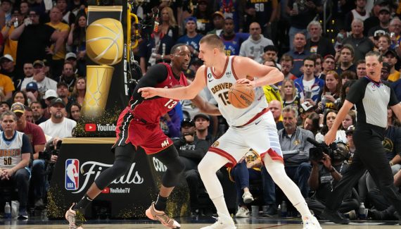 Ce n’était clairement pas son meilleur match de ces playoffs, mais Nikola Jokic a encore fait très mal au Heat dans cette cinquième manche remportée 94-89 pour décrocher le premier titre NBA de l’histoire des Nuggets. Il y a d’abord eu des balles perdues et pendant une mi-temps, on a vu un tout petit Jokic. La faute à une défense de Miami bien en place pour couper les lignes de passes, et l’empêcher de rayonner sur le jeu des Nuggets.
