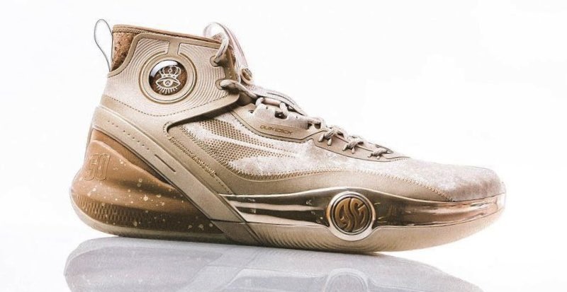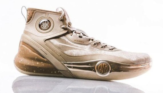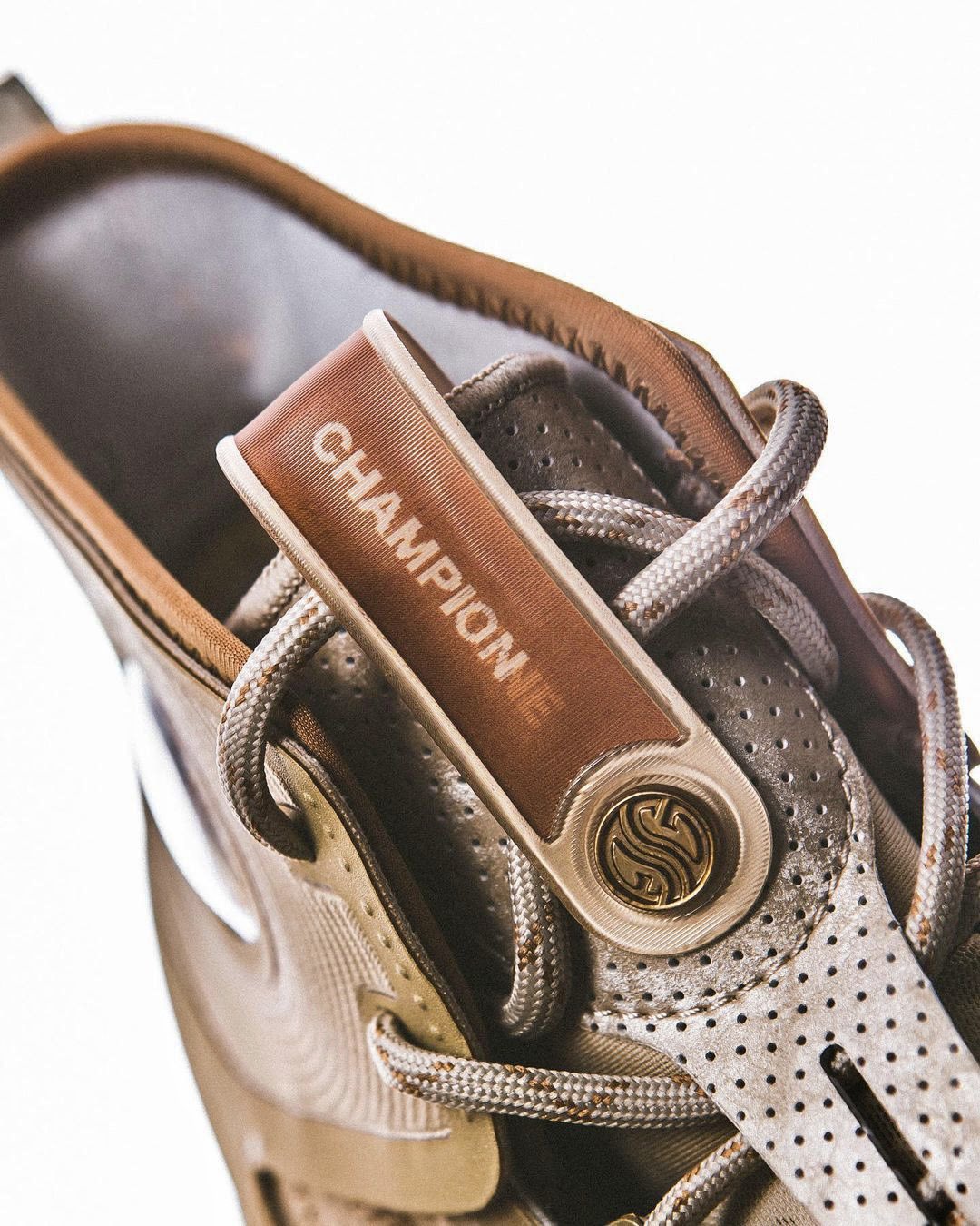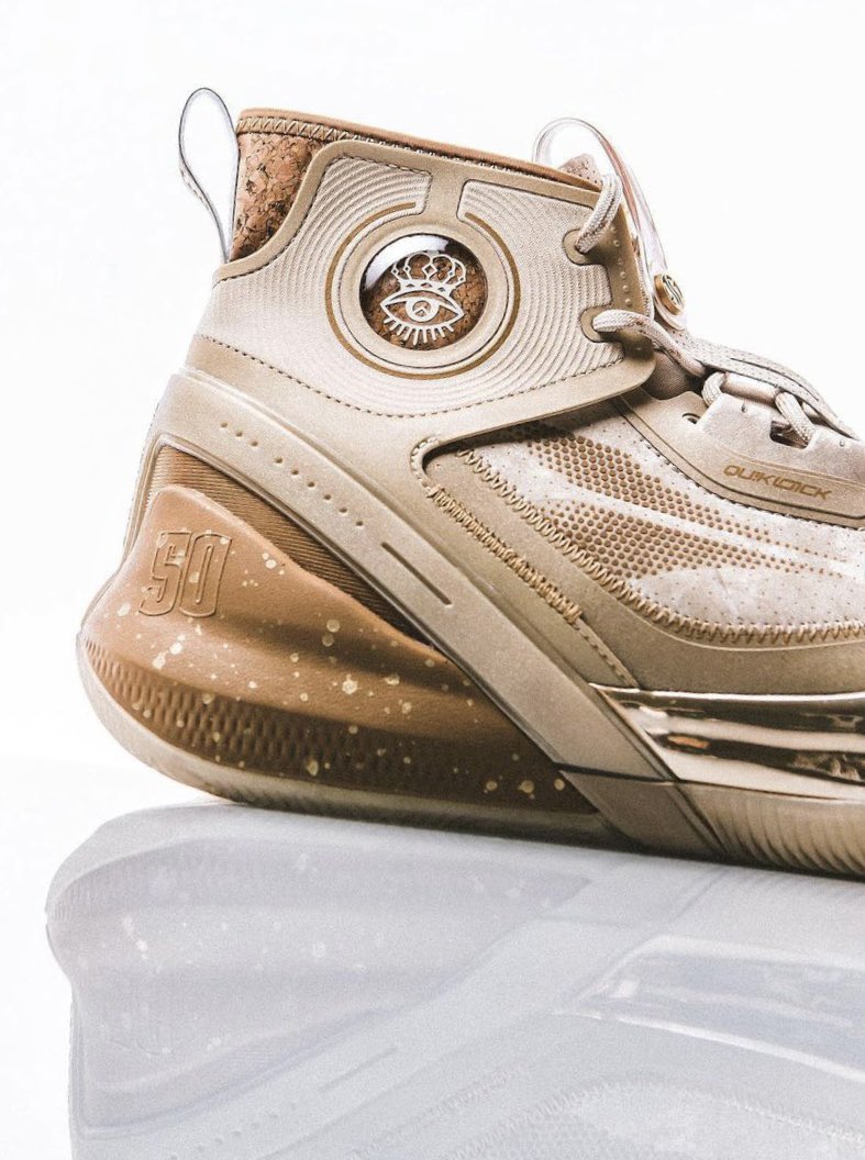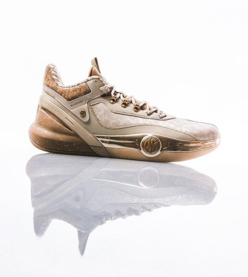 Pas encore disponible pour le grand public, le modèle s’articule entre marron et beige au niveau de la tige et de la semelle, avec pour principale originalité ses touches de liège figurant au niveau du col et du talon, comme sur l’un des récents coloris de la Curry 10. D’autres détails comme le numéro 50 du joueur sur la semelle intermédiaire et l’inscription “Champion” complètent l’ensemble.