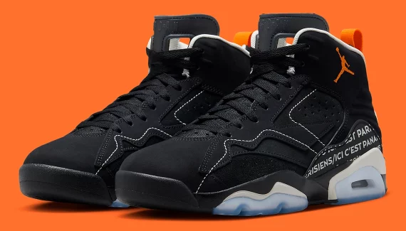 Comme pour la Air Jordan 6 Low, cette paire de Jordan MVP 678 se distingue par ses touches d’orange, sur le Jumpman et la tirette, pour compléter une tige noire avec à sa base l’inscription “Ici, c’est Paname”. Le col et le logo “Nike Air” ressortent en blanc, tandis que l’ensemble repose sur une semelle noir et bleu translucide. Encore un peu de patience pour connaître son prix et sa date de sortie.