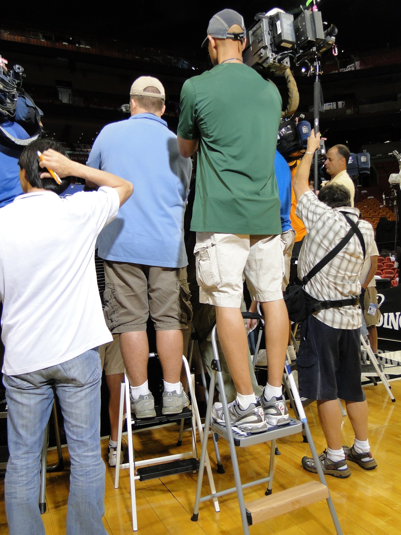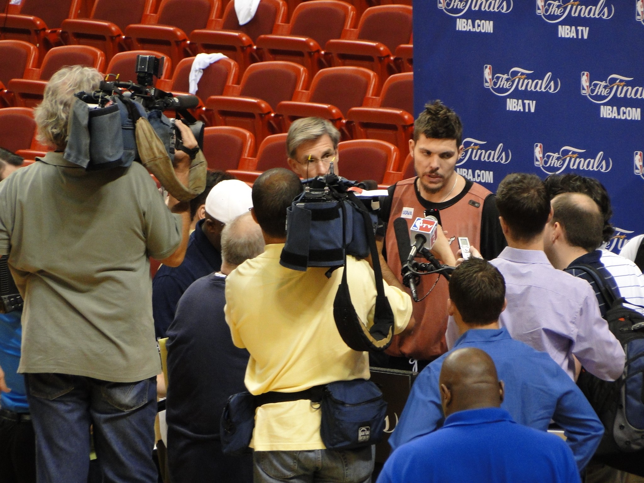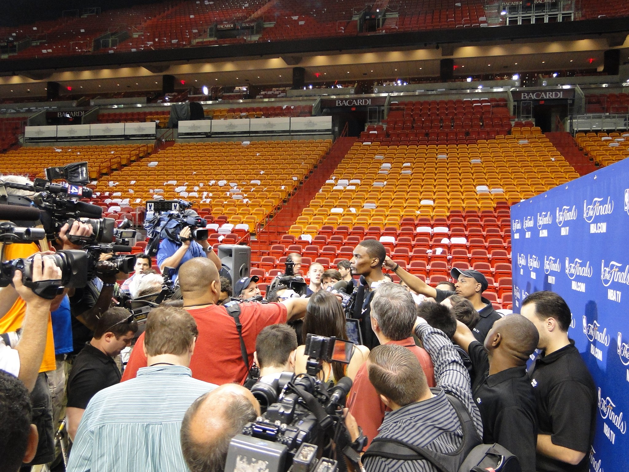 La conséquence directe d’un tel engouement planétaire, c’est le nombre de journalistes sur place. Nous sommes plusieurs centaines à être présents à Miami depuis le début de la semaine et les conditions de travail ne sont pas toujours évidentes. Il faut se battre pour se faire sa place au milieu des micros et caméras. De même qu’il faut oublier, ou presque, tout espoir d’exclusivité.