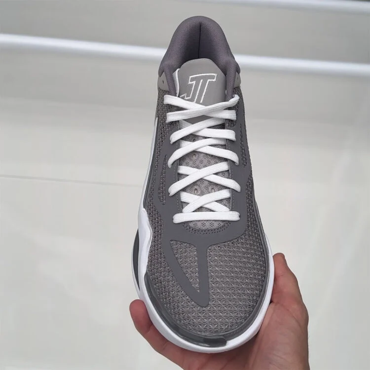 Jordan Brand a donc réutilisé le même code couleur pour concevoir une Jordan Tatum 1 “Cool Grey”. La tige se présente en deux teintes de gris complétée par les logos “Jumpman”, “JT” et les lacets en blanc. La semelle extérieure se présente également en blanc.