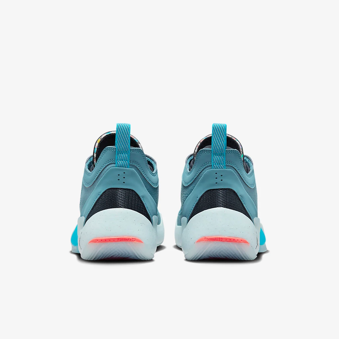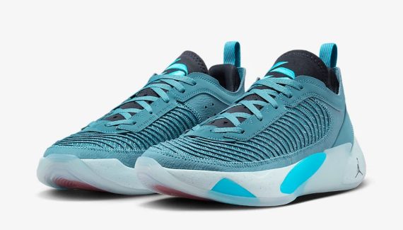 Baptisé « Noise Aqua », le coloris se décline en bleu « Noise Aqua » sur la tige, noir sur la languette et blanc pour la semelle assortie de renforts en TPU en bleu ciel. Le « Jumpman » ressort en noir sur la semelle tandis que le logo « LD » sur la languette apparaît en bleu.