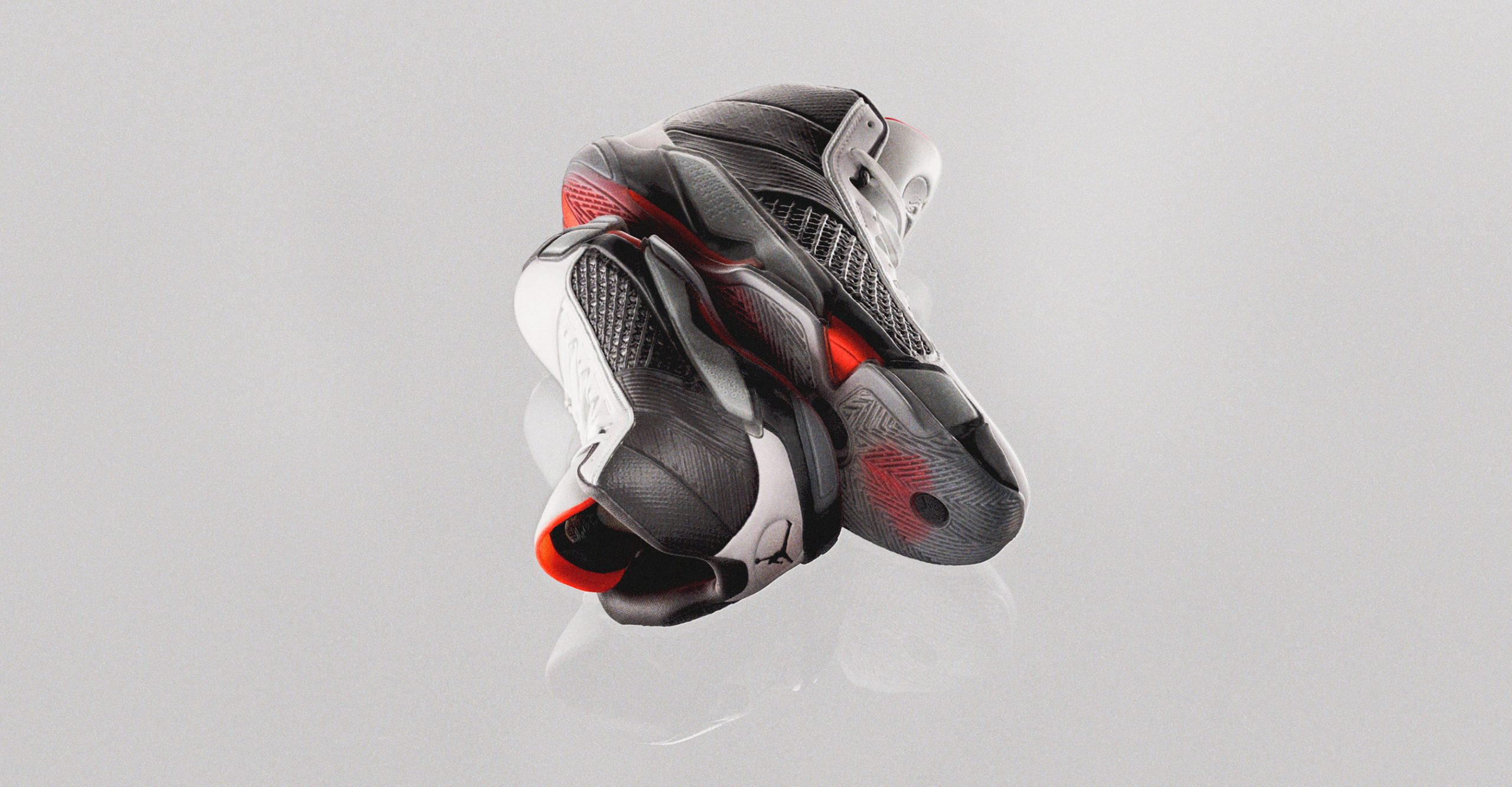 On commence par la technologie X-Plate, inspirée par le jeu de Michael Jordan. La X-Plate, qui fait référence aux lanières de la Air Jordan VIII, est combinée à un motif de traction en chevrons radiaux et à une unité Zoom Strobel sur toute la longueur.