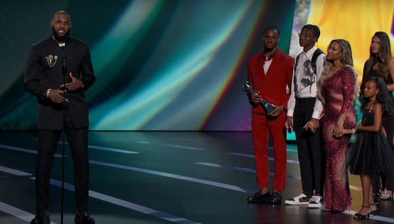 Cette nuit avaient lieu les traditionnels ESPYS Awards qui récompensent les meilleurs sportifs et les meilleures sportives de l’année, et LeBron James a reçu le prix de la “Best Record-Breaking Performance” pour avoir battu le record de points de Kareem Abdul-Jabbar. C’est son épouse, Savannah, et leurs trois enfants, Bronny, Bryce et Zhuri, qui l’ont invité à monter sur scène.