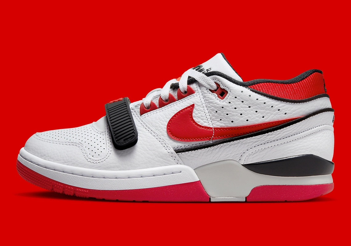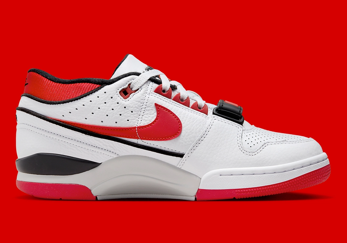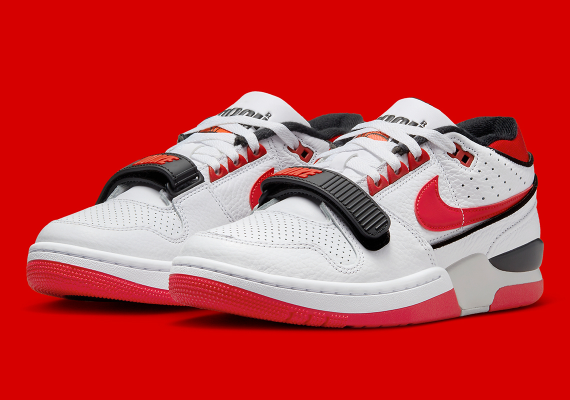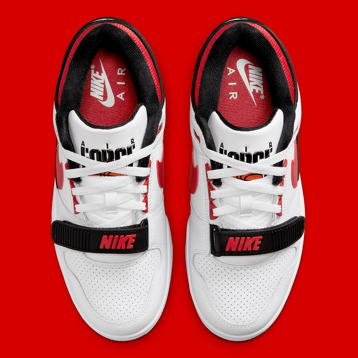 La version mythique inspirée de la Air Force 1 se distingue par sa sangle recouvrant les lacets, portant l’inscription « Nike » en rouge sur fond noir. La tige en cuir blanc est assortie de finitions en rouge et noir comme le veut la tradition. La languette fait ressortir le logo « Air Force » ainsi qu’un ballon de basket.