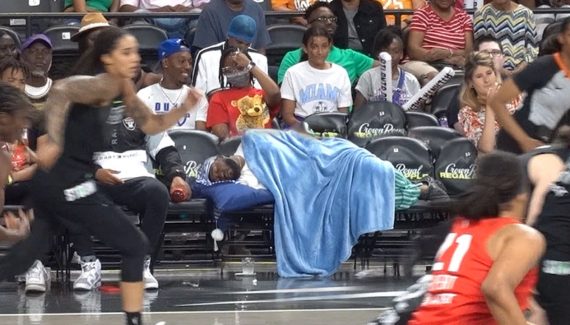 Sauf qu’il est revenu, lors d’un match WNBA des Los Angeles Sparks, décidant cette fois de s’installer pour faire une sieste au premier rang de la rencontre…