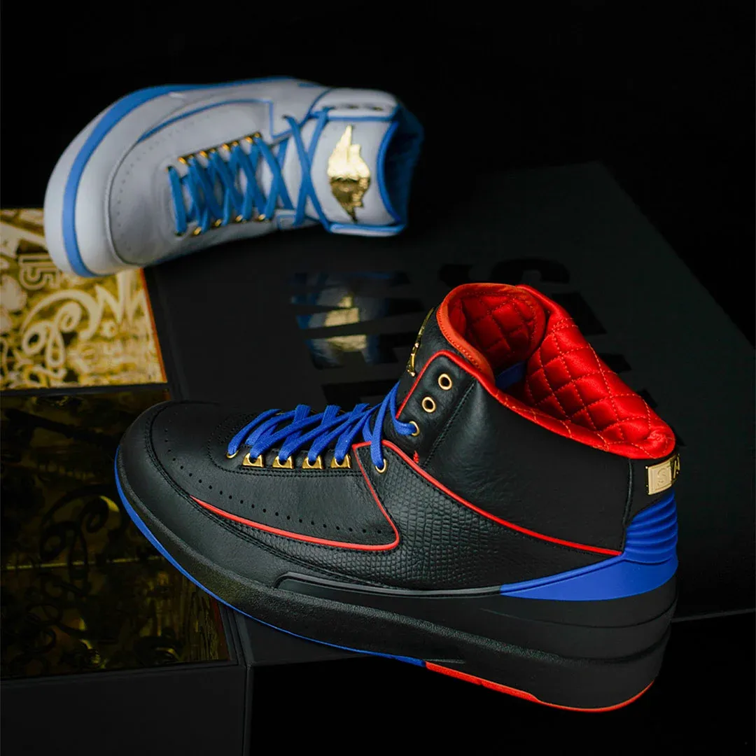 Jordan Brand a fait un beau cadeau à Carmelo Anthony pour son départ en retraite, annoncé en mai dernier et mettant fin à 19 ans d'une riche carrière même s'il n'a jamais remporté de bague de champion NBA. La marque au “Jumpman” a ainsi sorti un pack contenant deux Air Jordan 2 hautes, et dont chaque coloris reprend les couleurs des équipes dans lesquelles “Hoodie Melo” a joué.