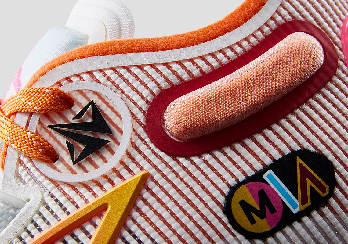 Le premier, qui s’intitule “City Edition”, est inspiré des différentes couleurs utilisées par le Heat pour ses maillots “alternatifs” comme le maillot City Edition. La base blanche en mesh est ainsi assortie de touches d’orange, de rose et de bleu. On aperçoit également l’insigne “MIA” aux couleurs du maillot City Edition de l’an dernier.