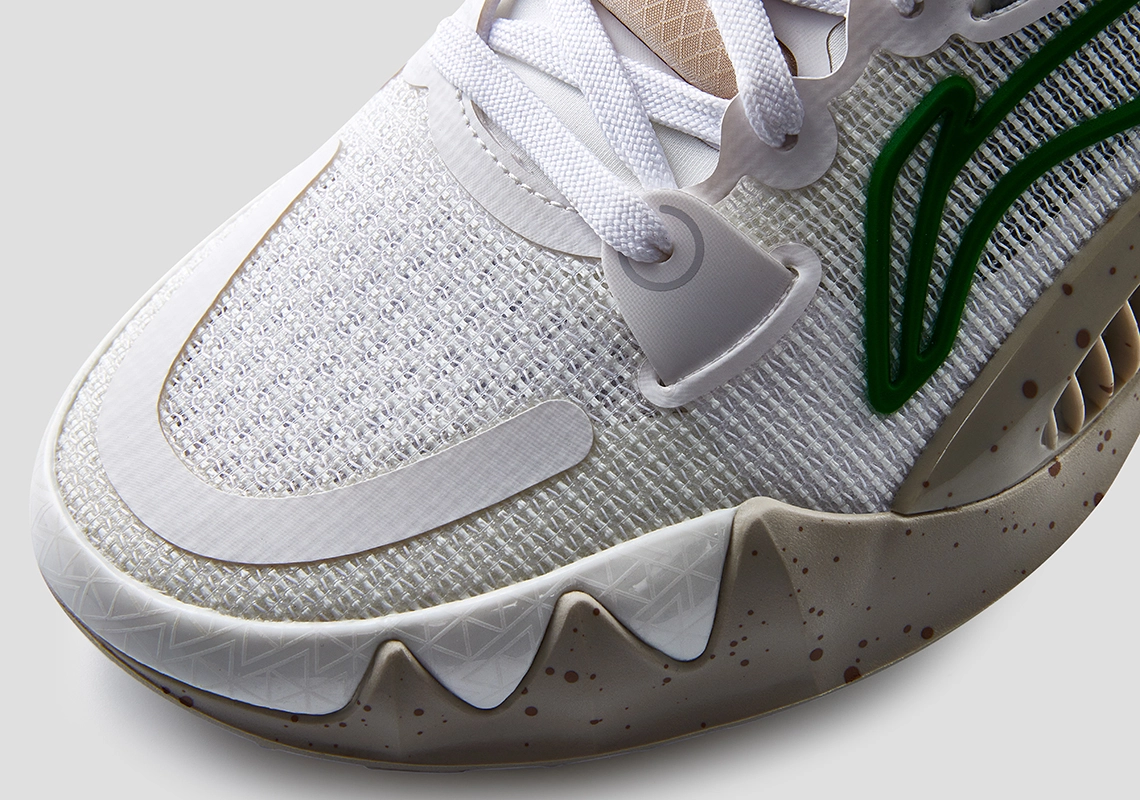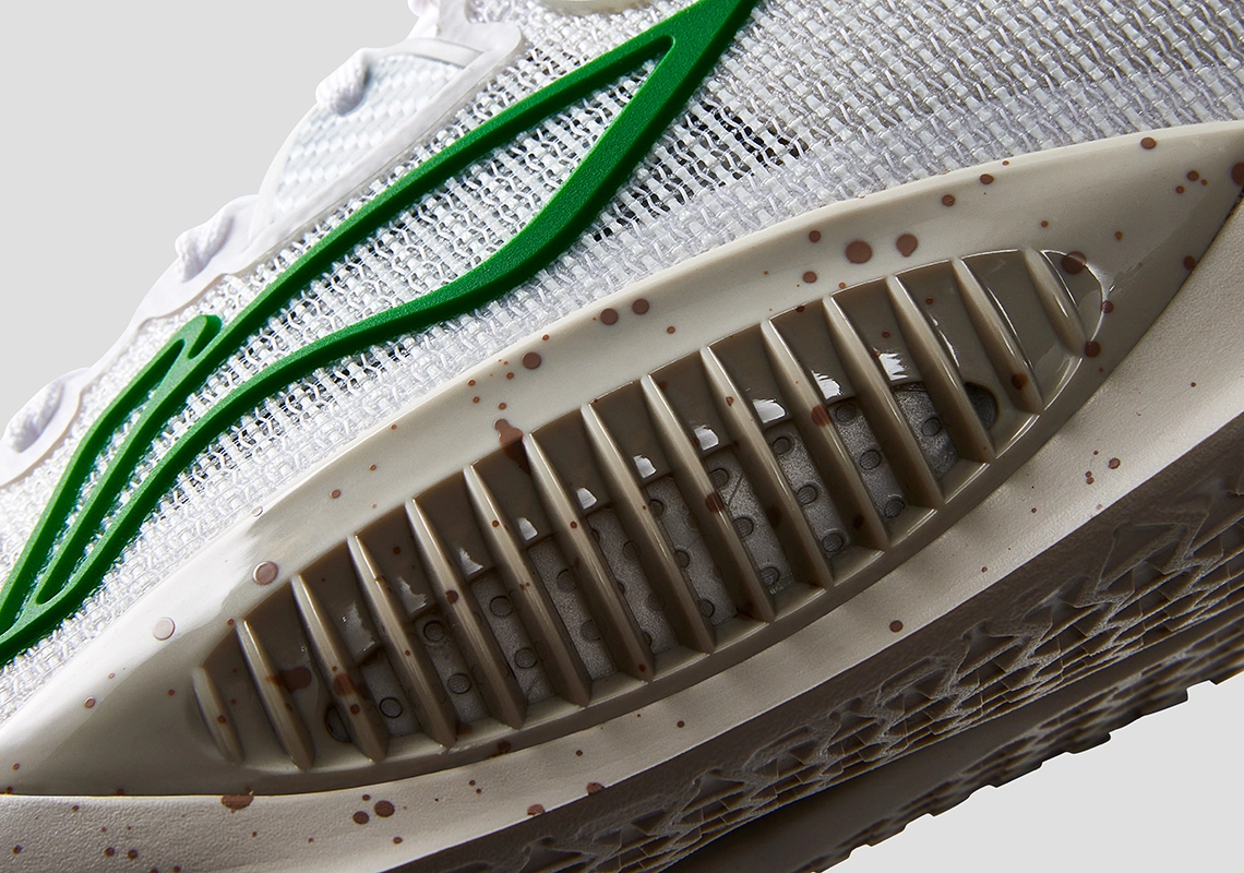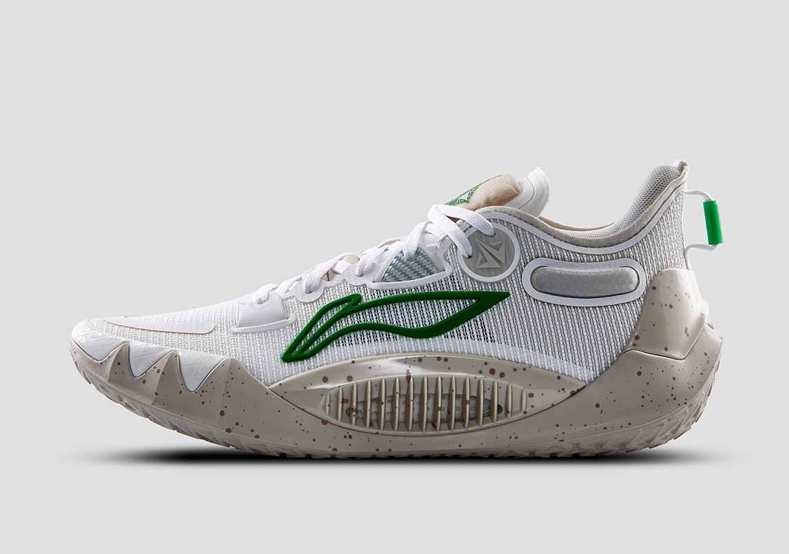 La deuxième chaussure arbore un coloris “Miracle” en référence au parcours incroyable du Heat en playoffs, parvenu en finale sans avoir bénéficié de l’avantage du terrain durant toute la campagne. La tige blanche comporte cette fois des finitions en vert, sur le logo Li-Ning notamment, en clin d’œil aux Bucks et aux Celtics, éliminés par la franchise floridienne, tandis que la semelle est tachetée de marron. Il ne manque qu’un peu de bleu et orange pour les Knicks !