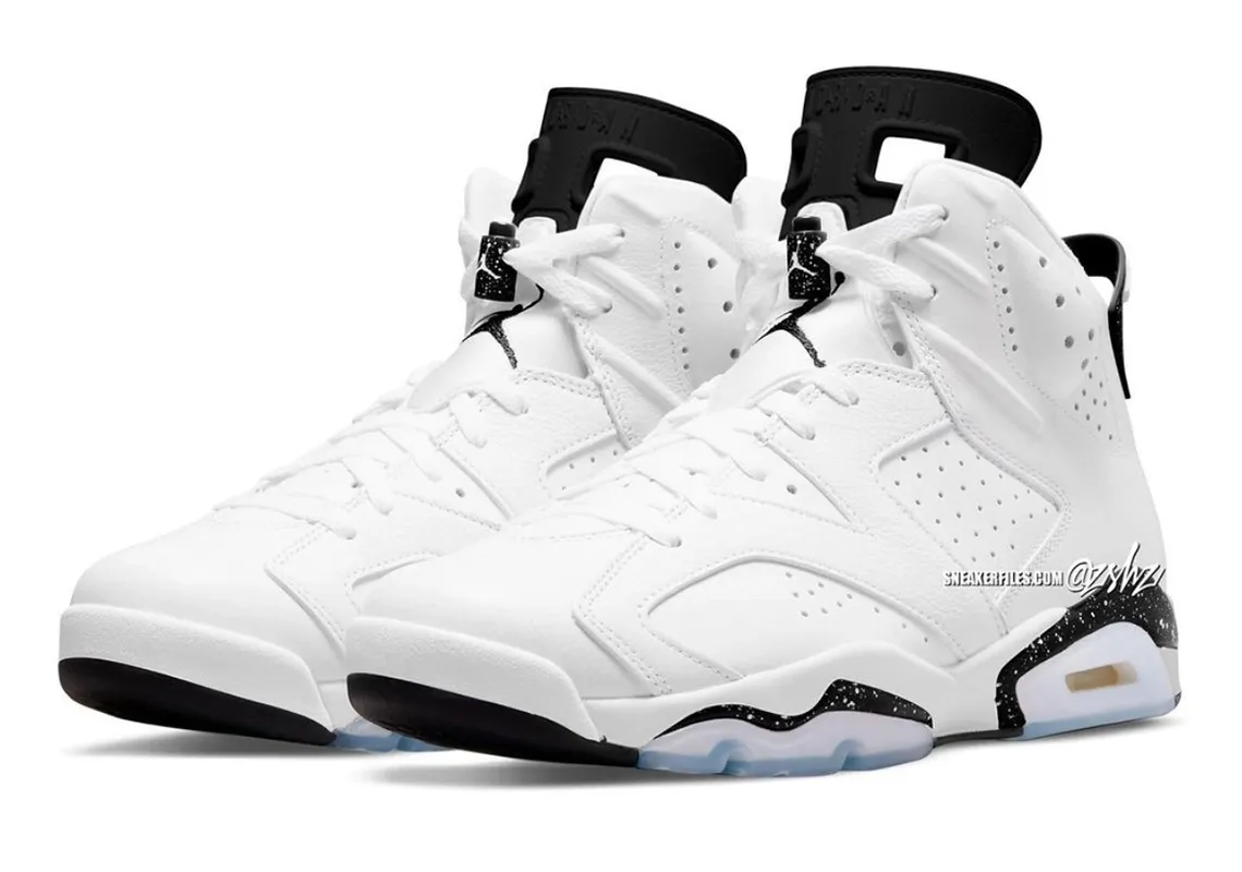 C'est dans un blanc éclatant que la prochaine Air Jordan 6 pourrait bientôt débarquer sur le marché avec ce coloris « Reverse Oreo », avec donc une discrète référence au biscuit mondialement connu, et qui succède donc à la AJ 6 « Oreo » sortie en 2010.