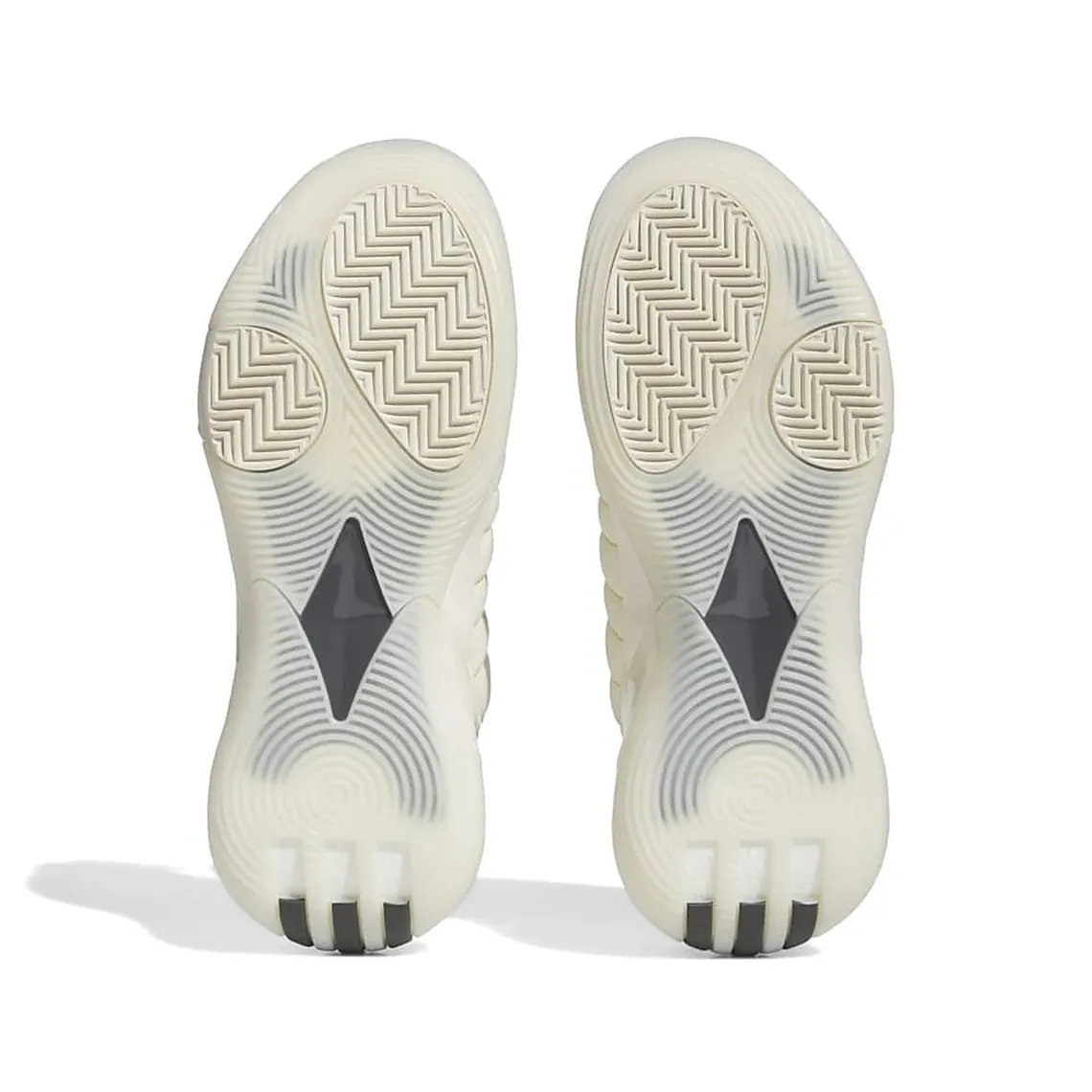 L’empeigne est ainsi enveloppée de toile d’un blanc nacré, avec l’avant du pied en gris foncé avec la aussi une nouvelle texture comme tricotée. L’intérieur du “chausson”, en gris, a également été travaillé. Les trois bandes de la marque adidas ressortent en noir au niveau du talon.