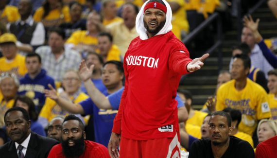 | 2014-15 * | HOU | 55 | 26 | 43.8 | 33.0 | 52.1 | 1.8 | 4.2 | 6.0 | 2.6 | 2.7 | 0.9 | 2.4 | 1.2 | 12.0 |