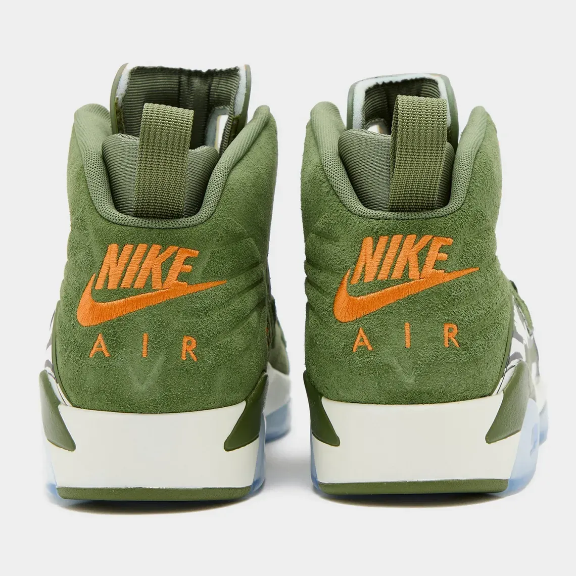 Jordan Brand est en train de mettre le paquet sur son dernier modèle hybride, la Jordan MVP 678, inspirée des Air Jordan 6,7 et 8 sorties entre 1991 et 1993, lors du premier “Three-peat” de Michael Jordan avec les Bulls. La marque au Jumpman a déjà dévoilé de nombreux coloris dont une version PSG. Voici un nouveau thème original autour du camouflage avec un modèle principalement vert et une base en cuir recouverte de parties en daim vert foncé.