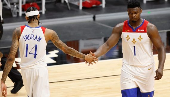 CJ McCollum, Herb Jones, Brandon Ingram, Zion Williamson, Jonas Valanciunas