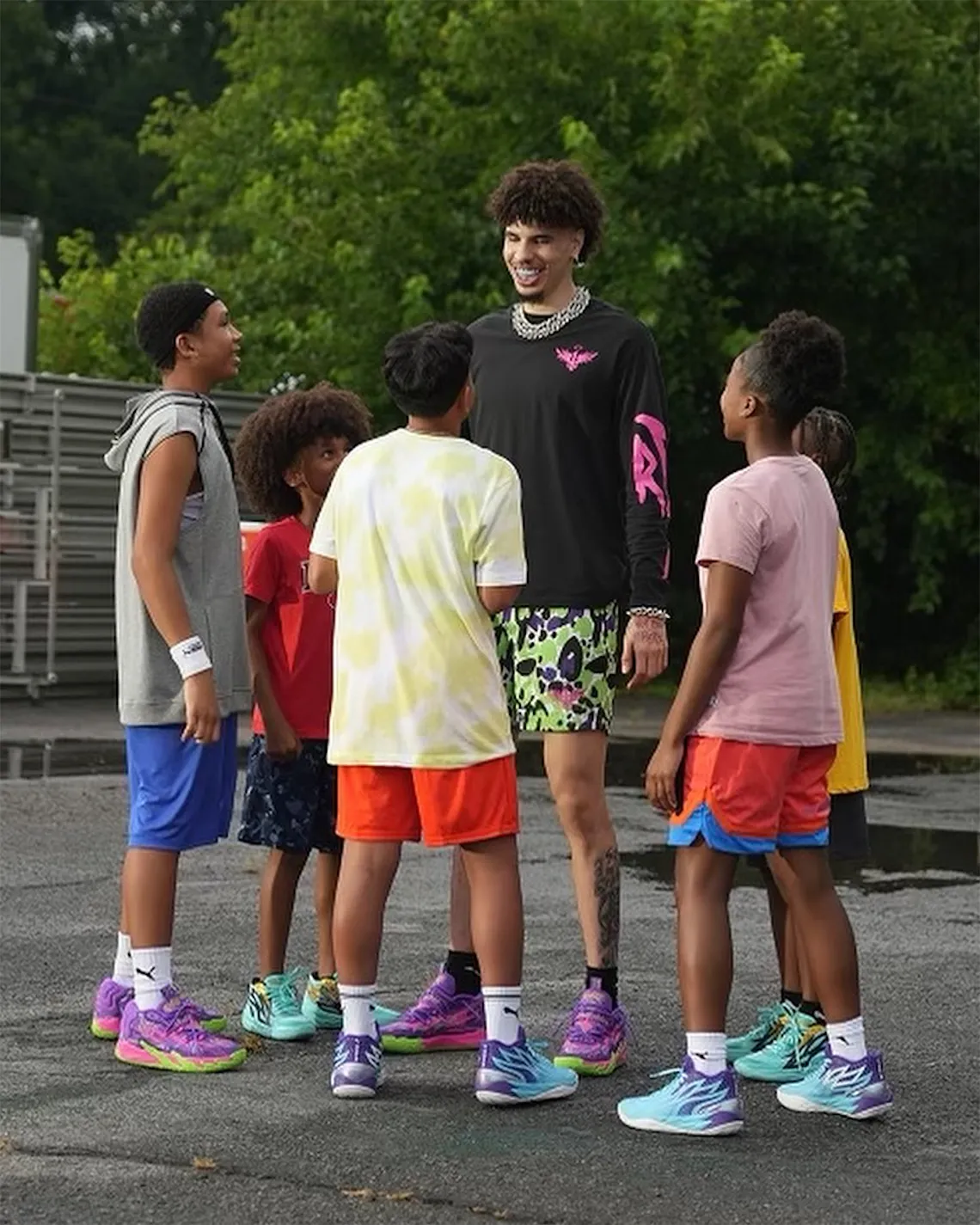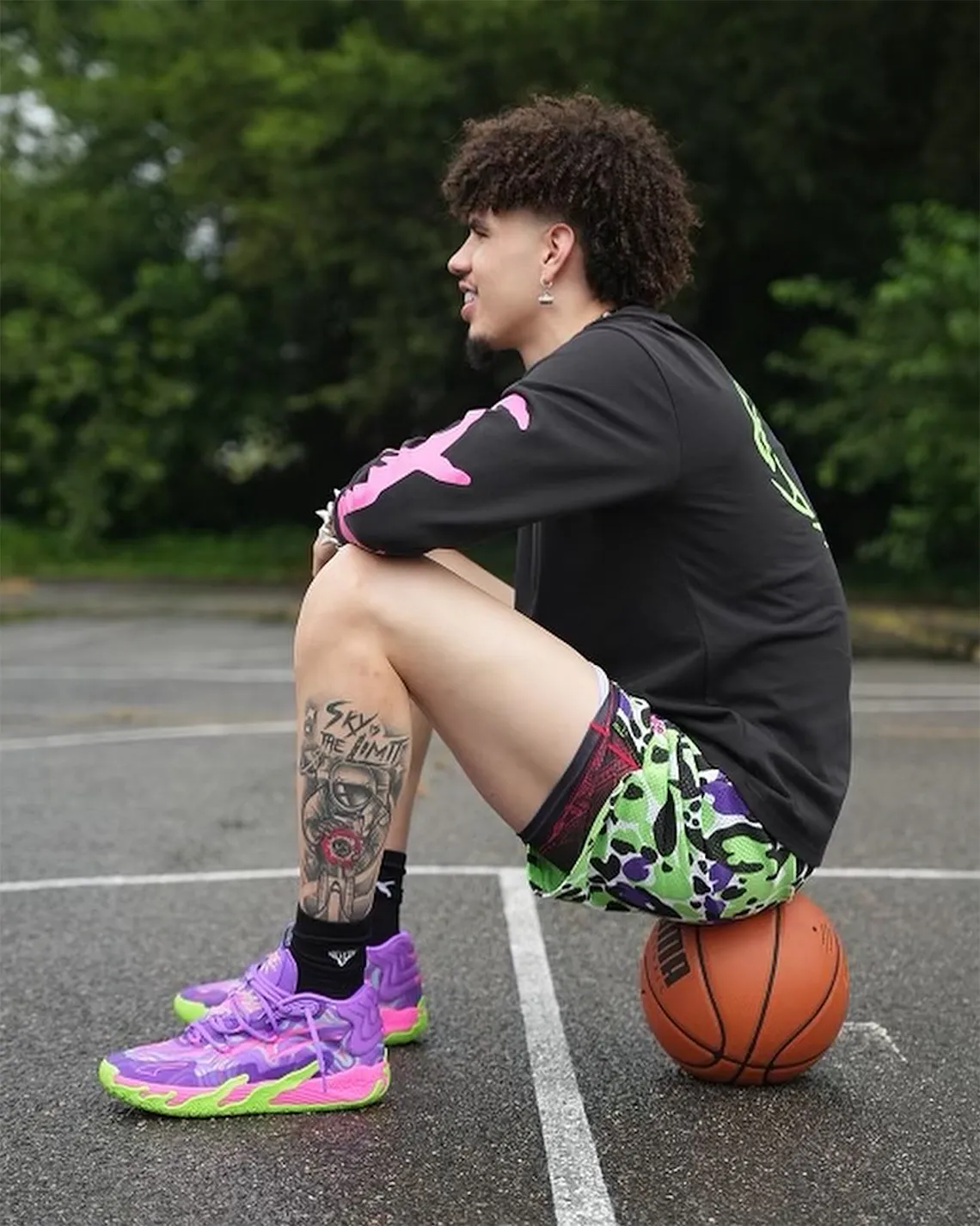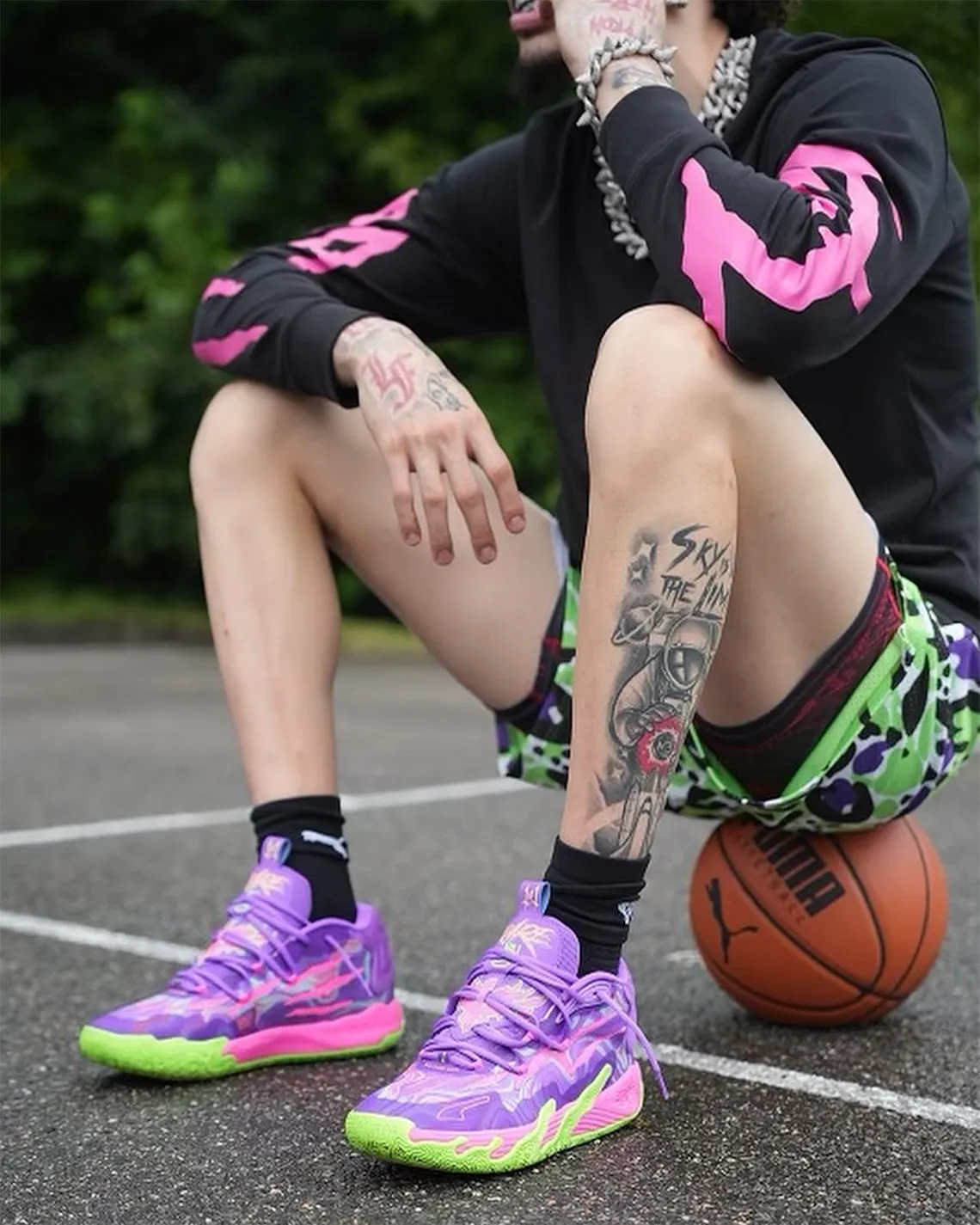 La MB.03 poursuit tranquillement sa montée en puissance en espérant que celle-ci soit conjuguée au retour en force de LaMelo Ball sur les terrains à la rentrée. Le meneur des Hornets, qui avait déjà affiché son prochain modèle signature lors de son passage à Paris en juin dernier, a cette fois présenté un nouveau coloris qui devrait être nommé « Joker ».