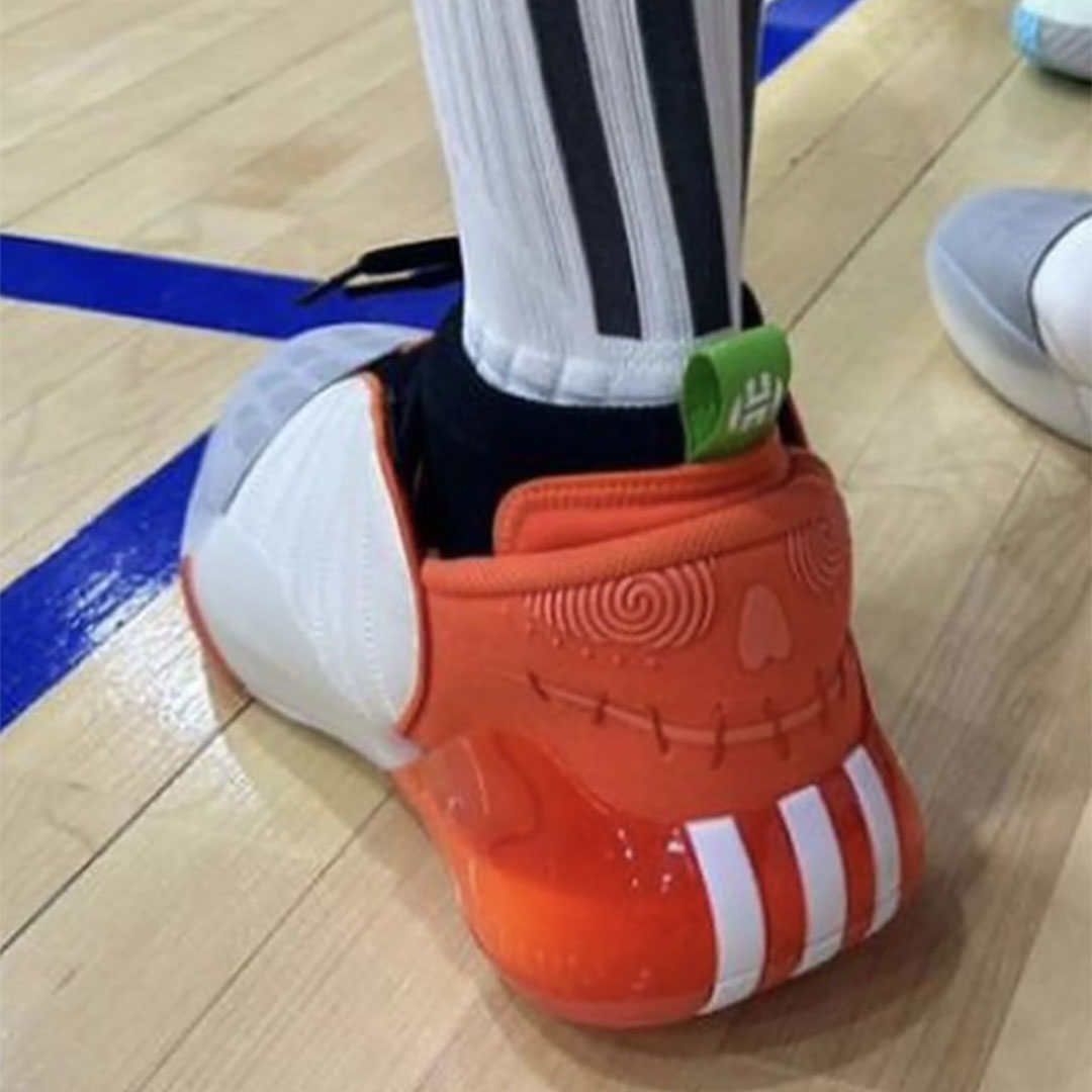 La semelle apparaît en blanc et orange. Les trois bandes d’adidas ressortent également en blanc sur orange au niveau du talon. La Harden Vol. 7 « Halloween » devrait sortir dans le courant du mois d’octobre.