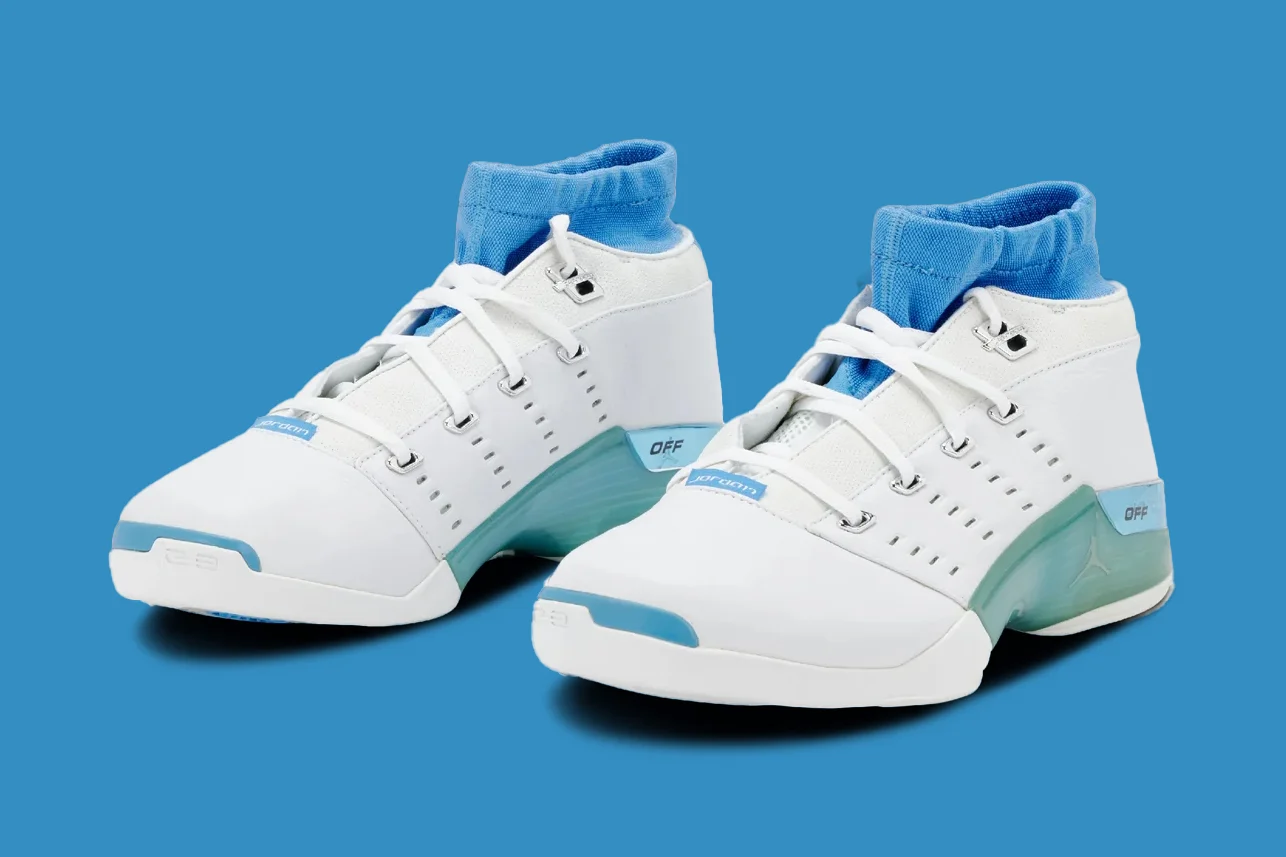 Comme annoncé en avril dernier, la Air Jordan 17 va bel et bien faire son retour en 2024 en version basse notamment et sous plusieurs coloris, comme cette version « University Blue », que Michael Jordan a portée en 2002, sous le maillot des Wizards.